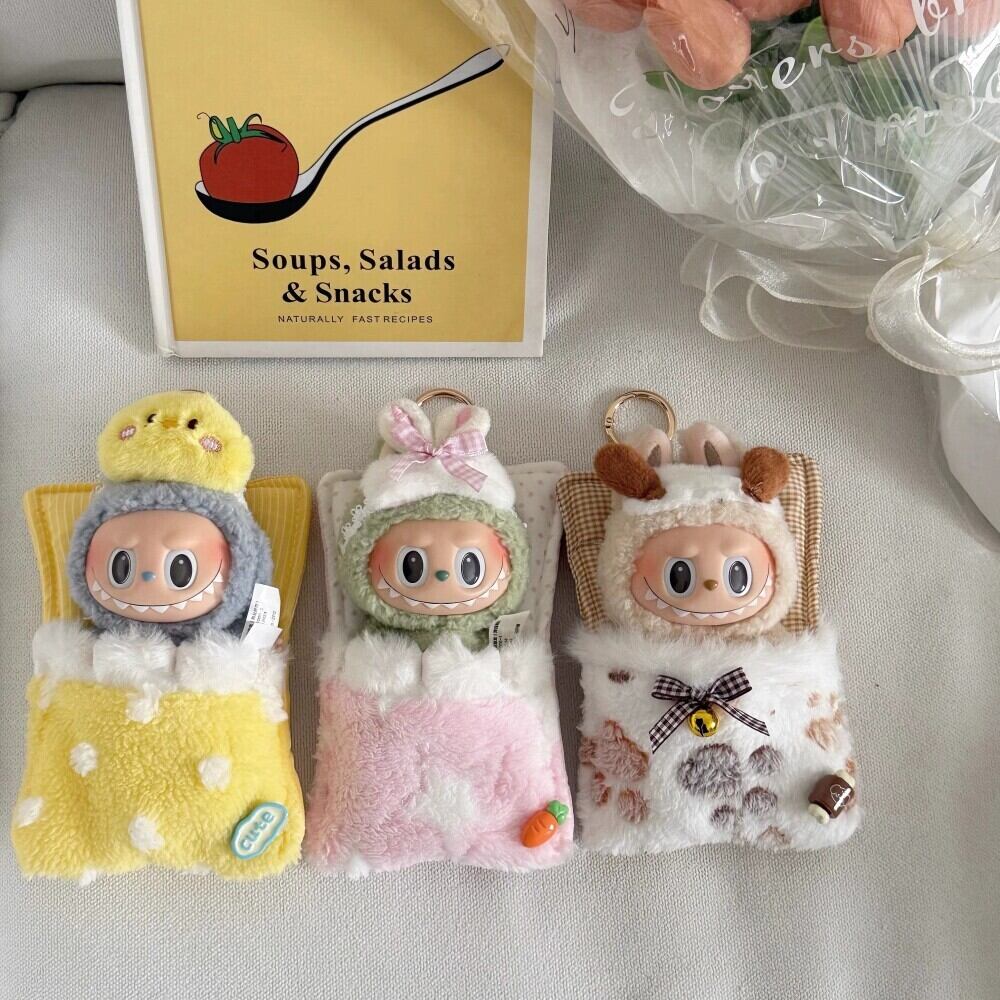 めっちゃ可愛い!ラブブ ゆるかわ スリーパー もふもふケープ 【15/17cm兼用】アヒル くま うさぎ 付き 1/2/3代 ふわふわ ドール服 labubu