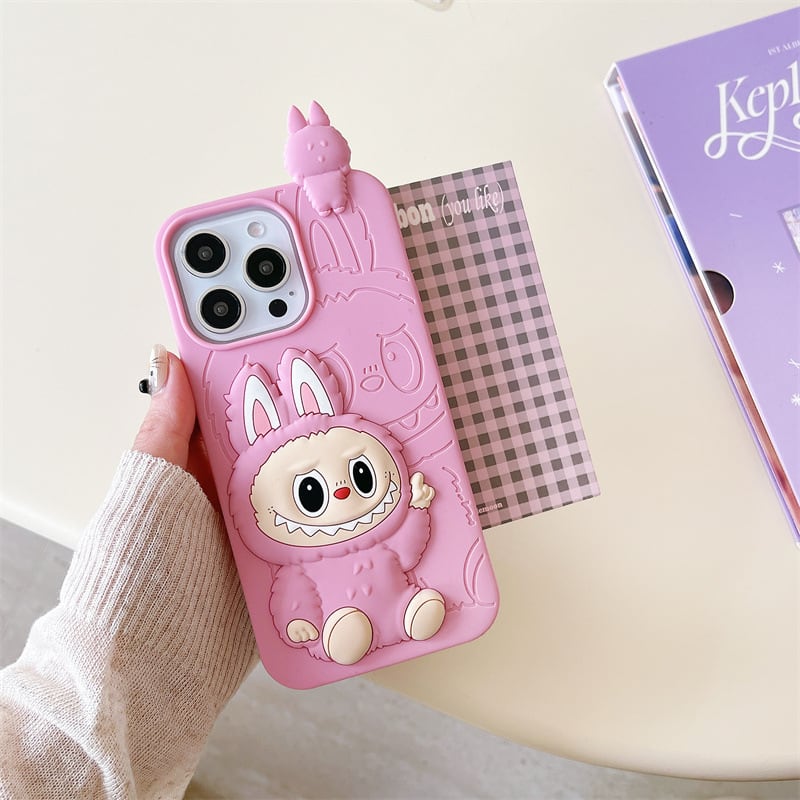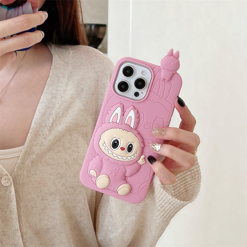 ちゅらふわ✨立体ラブブのiPhone16ケース ♡ 2色 (ピンク/ブラウン) でめっちゃ可愛い!マルチスタンド機能 ポップでキュートなデザイン
