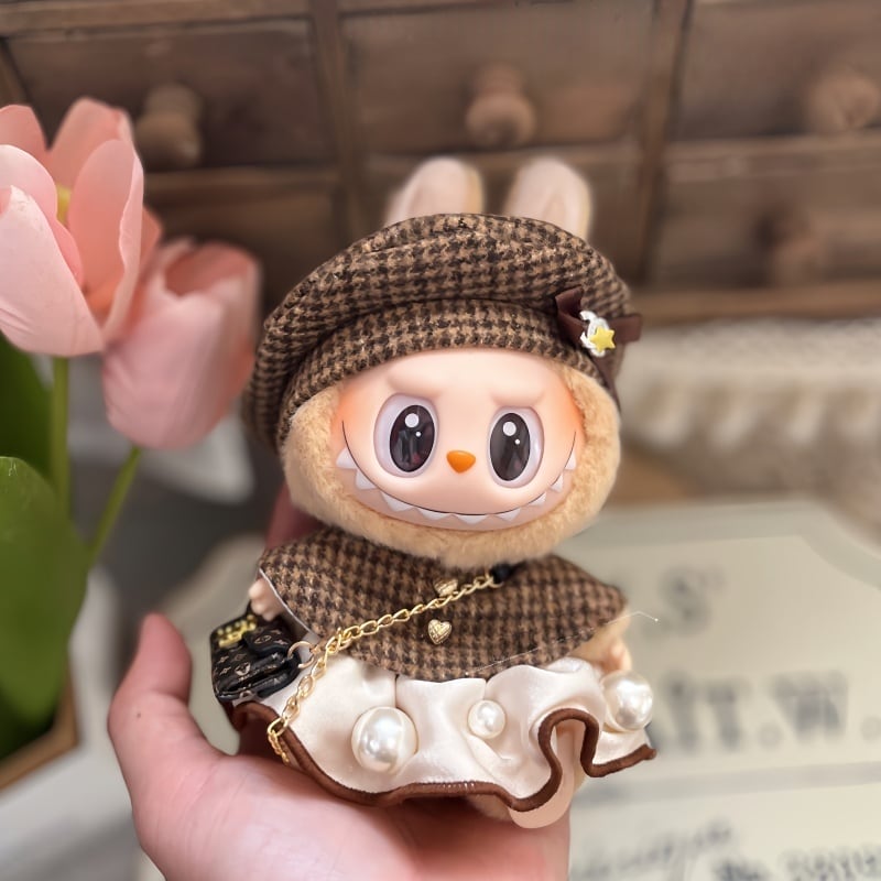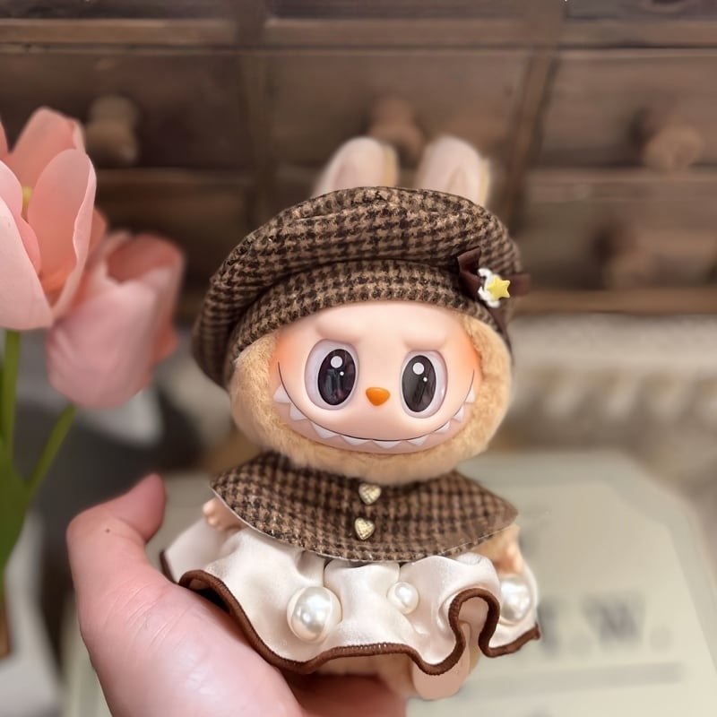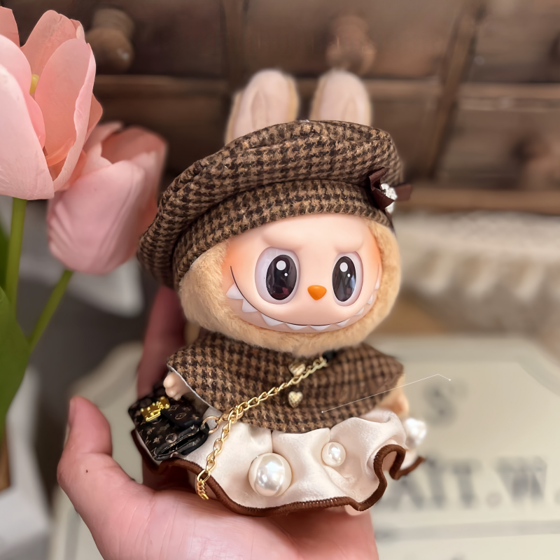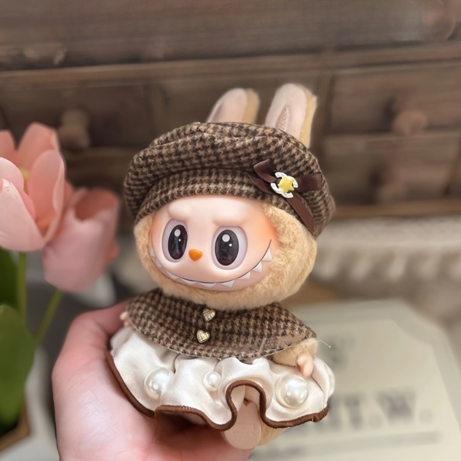 【Labubu ドール服】上質なチェックのマントセット - 1/2世代 15cm&17cm 対応 エレガントで大人かわいいお姫様スタイル ラブブ