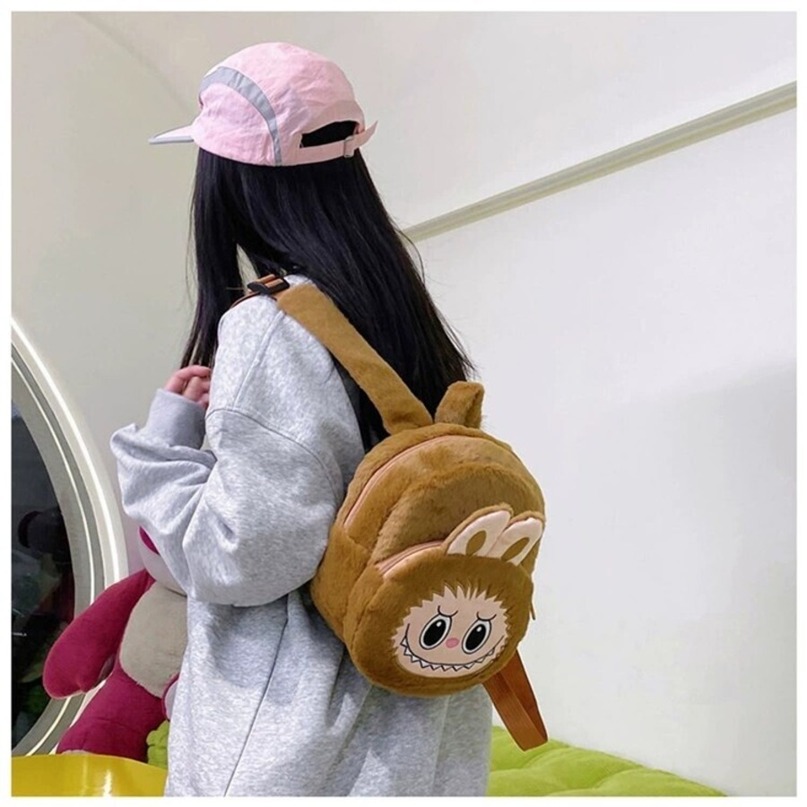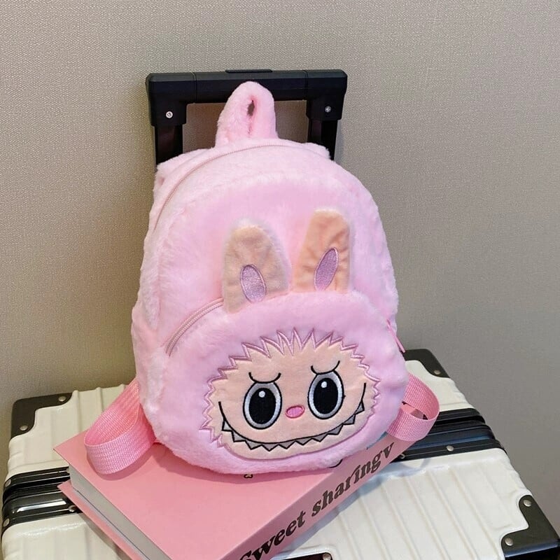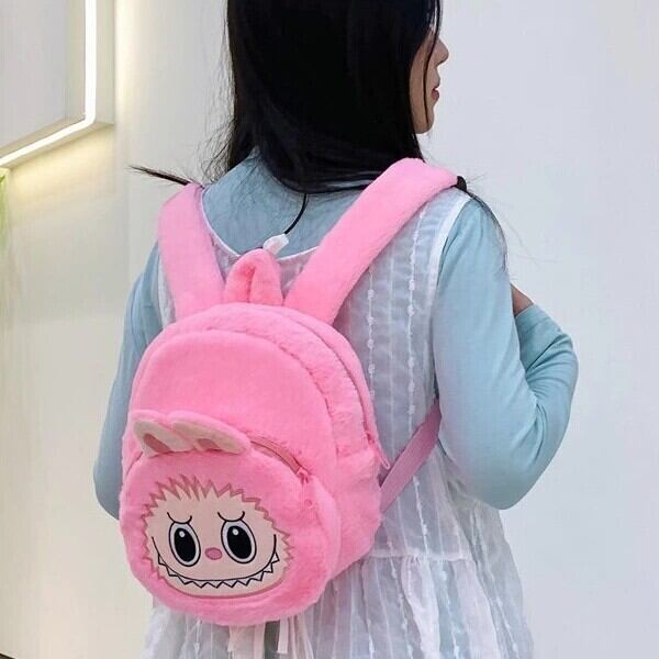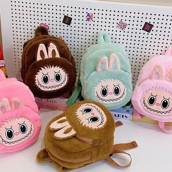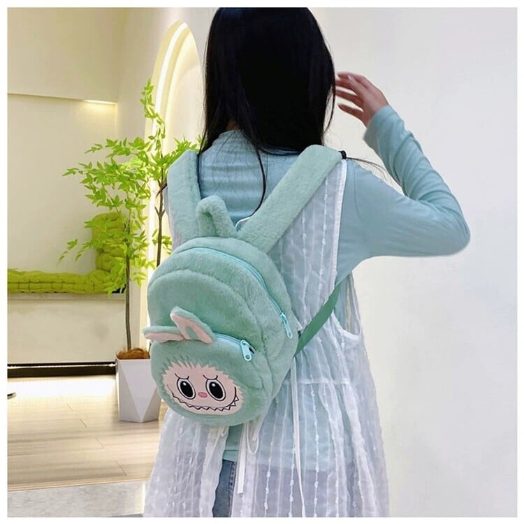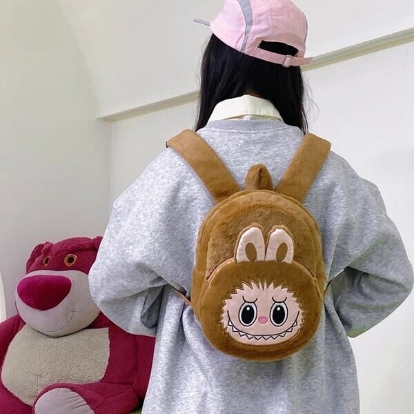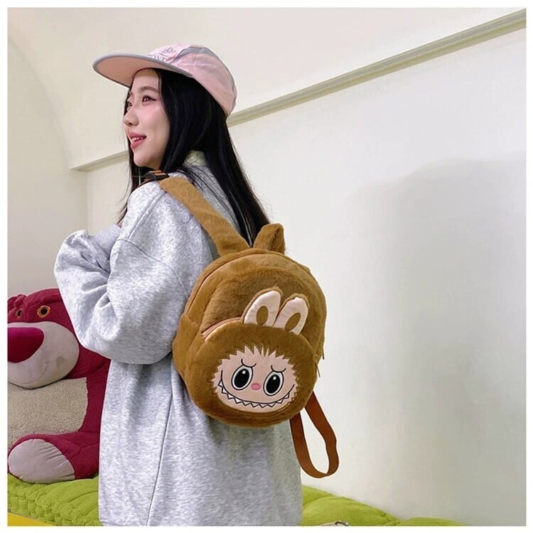 ワイドベルトで快適!太めベルトのLabubuリュック 21cm*21cm ラブブ ふわふわLabubu大容量リュック。大人から子どもまで使える可愛いデザイン