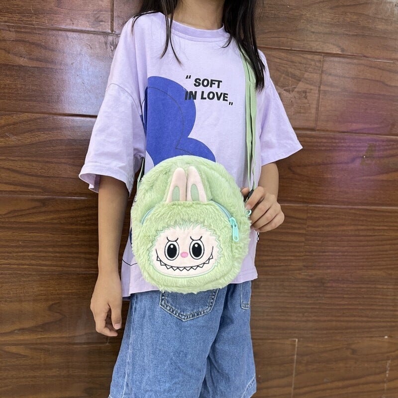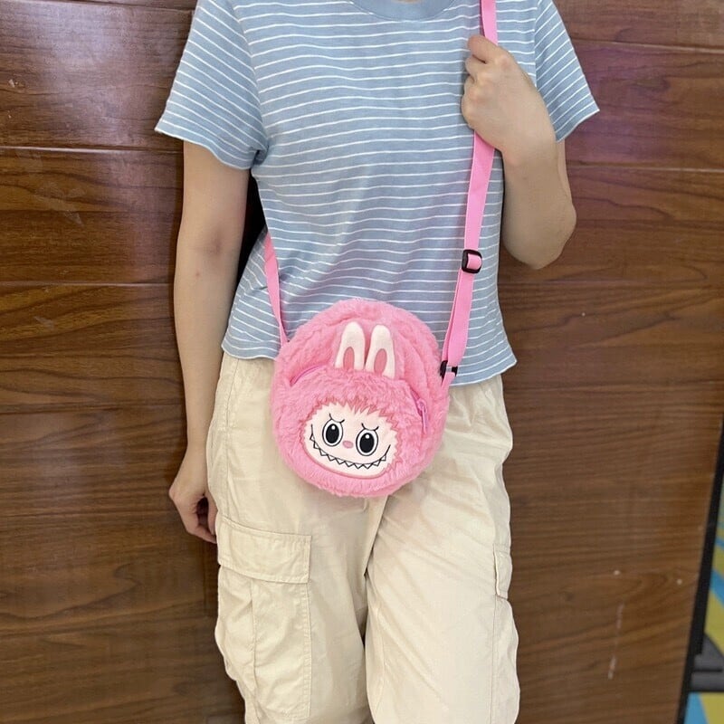 たまらない可愛さ!ふわふわ毛糸のLabubu斜めがけバッグ♡ もふもふ触り心地でお出かけが楽しくなる!4色展開でパーティーやデートに