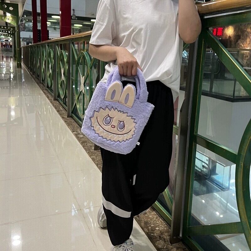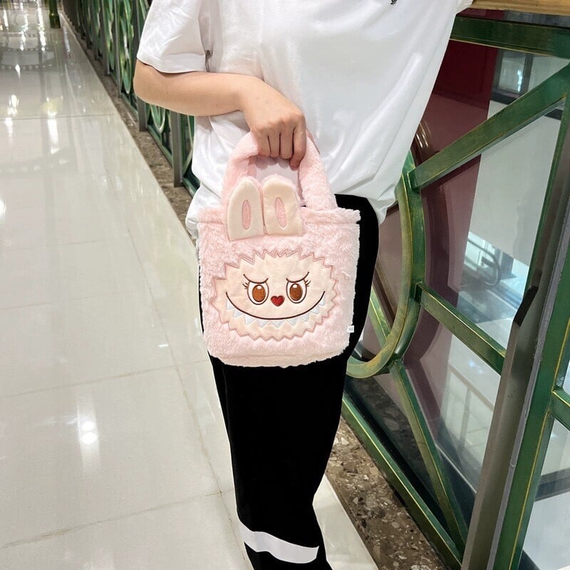もふもふLabubuミニバッグ♪ お出かけ ラブブ むちむちふわふわな雰囲気 癒やし 5色の可愛いカラー デートやピクニックに もふもふ触り心地 可愛い