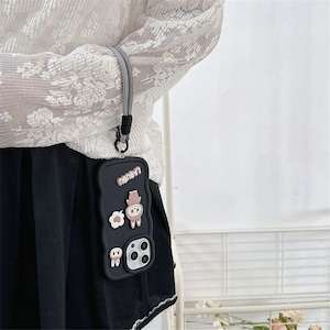 【商品名】やわらかいシリコン製♡ Labubu iPhone ケース ストラップ 付き シリコン やわらかい 波浪縁 カップル 15 16 14 13 Pro Max 対応 かわいい ラブブ