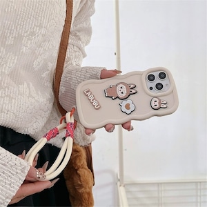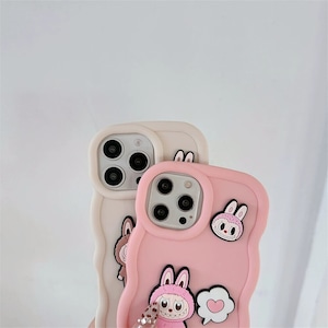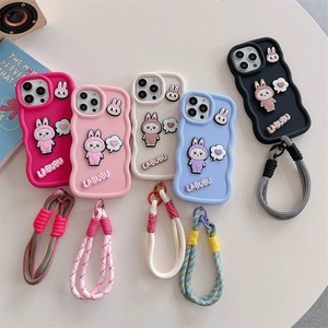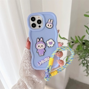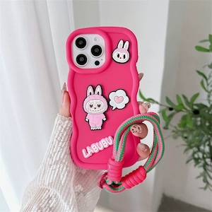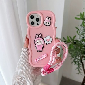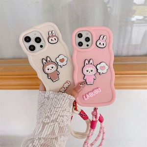 やわらかいシリコン製♡ Labubu iPhone ケース ストラップ 付き シリコン やわらかい 波浪縁 カップル 15 16 14 13 Pro Max 対応 かわいい ラブブ