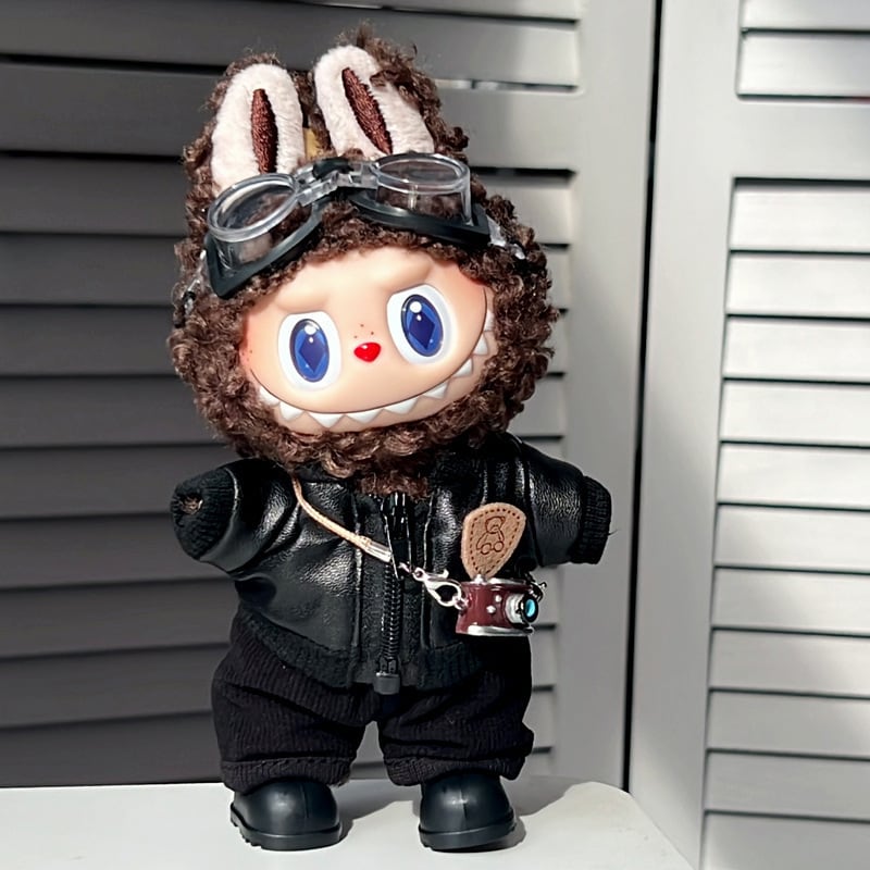 全部黒で超カッコいい!オールブラックコーデ labubu ラブブ ドール服 テディベアレザー 6点セット クールスタイル 1.0 2.0 3.0 対応 15cm 17cm クールスタイル