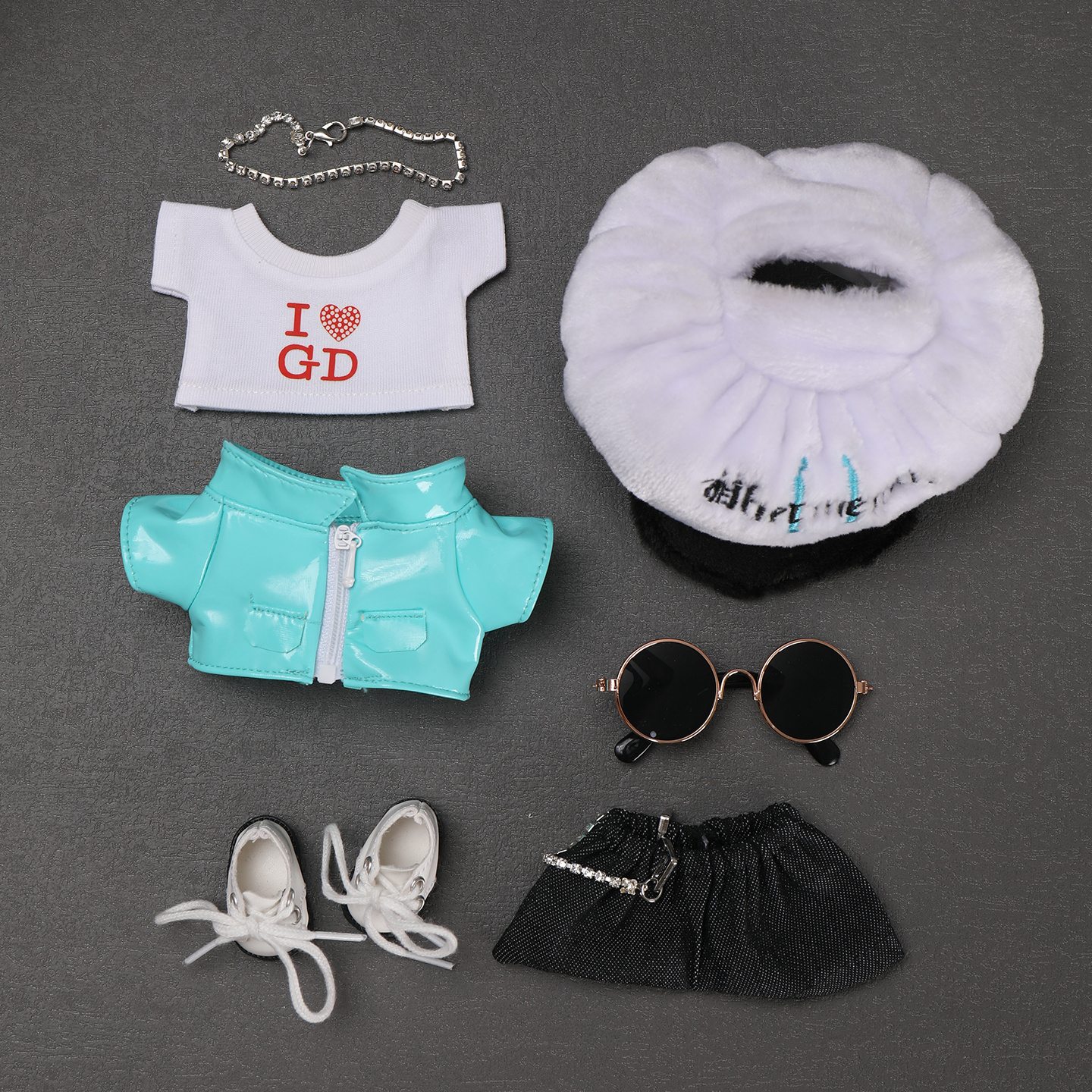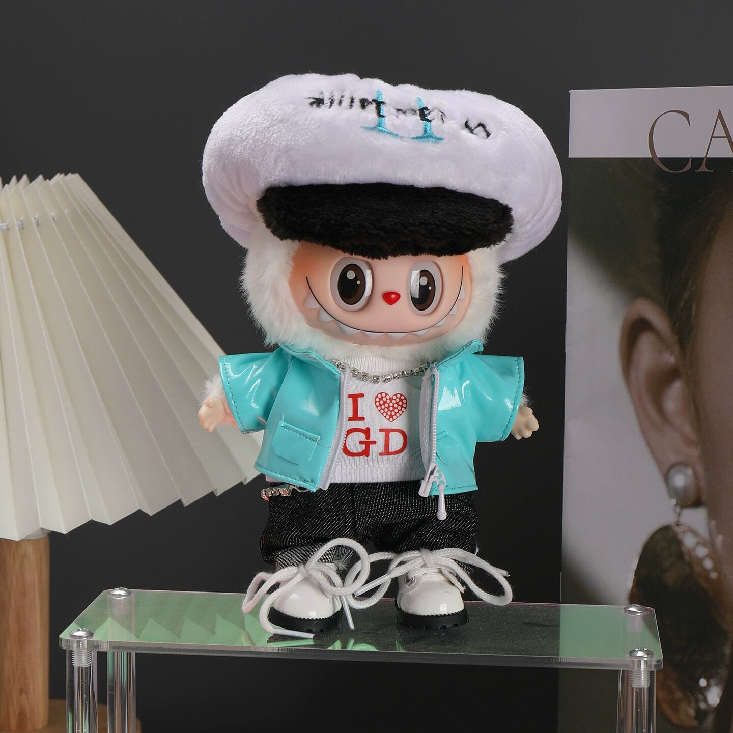 クールで可愛い 究極スタイル♡ Labubu用 ブルー系 6点コーデセット カッコよさと可愛さの一枚決まり 15cm/17cm 対応 おしゃれ コーディネート ドールズ