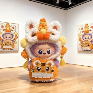 Labubu 4.0用 4色展開 激かわ♡ おめでたい 獅子舞 変身セット! もこもこ 10cm ラブブ ウェア 4色展開 コスチューム 変装 セット
