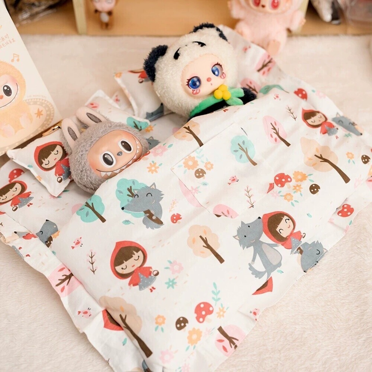 2人用寝袋&ベッドセット これ一つで完結!Labubu ベッドセット ダブル寝袋付き たっぷりかわいい布団とふわふわベッド 10cm/15cm/17cm ラブブ用