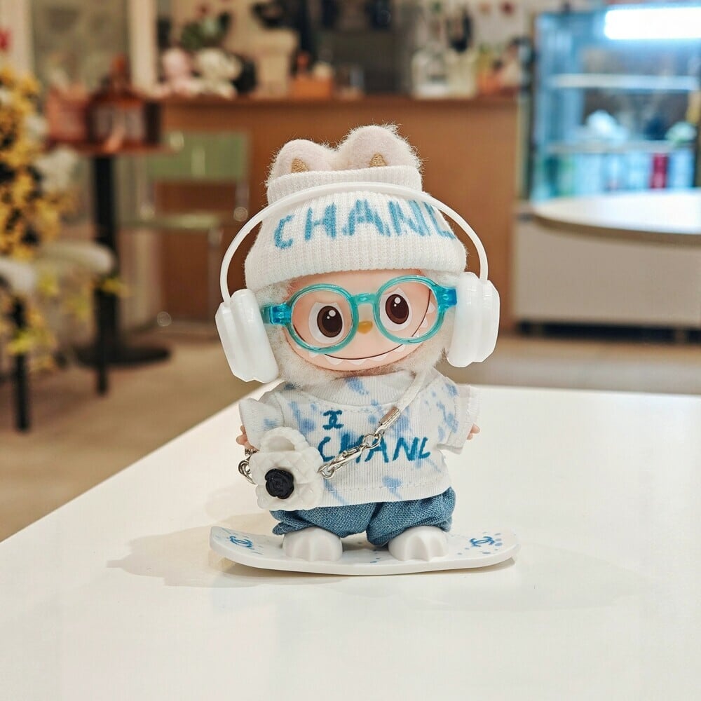 フルセット スポーティーでクールなコーデ!Labubu 4.0 スケートファッション 7点ウェアセット 爽やかブルーホワイトで着せ替え満喫 10cm ラブブ