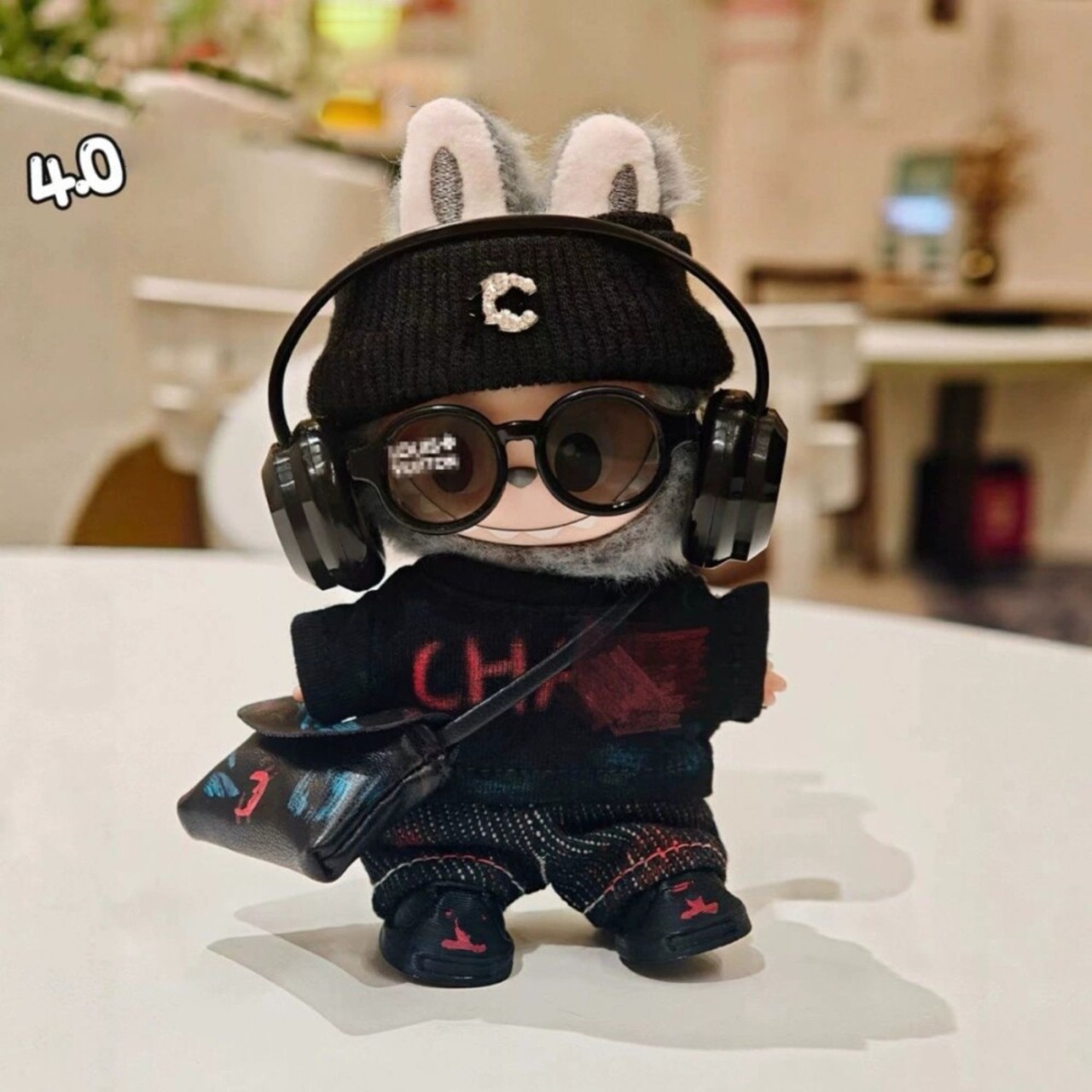 圧倒的カッコよさ!labubu ラブブ4.0 10cm用 ブラック×レッド モードコーディネート シックで究極に大人カッコいいドール服セット 可愛い