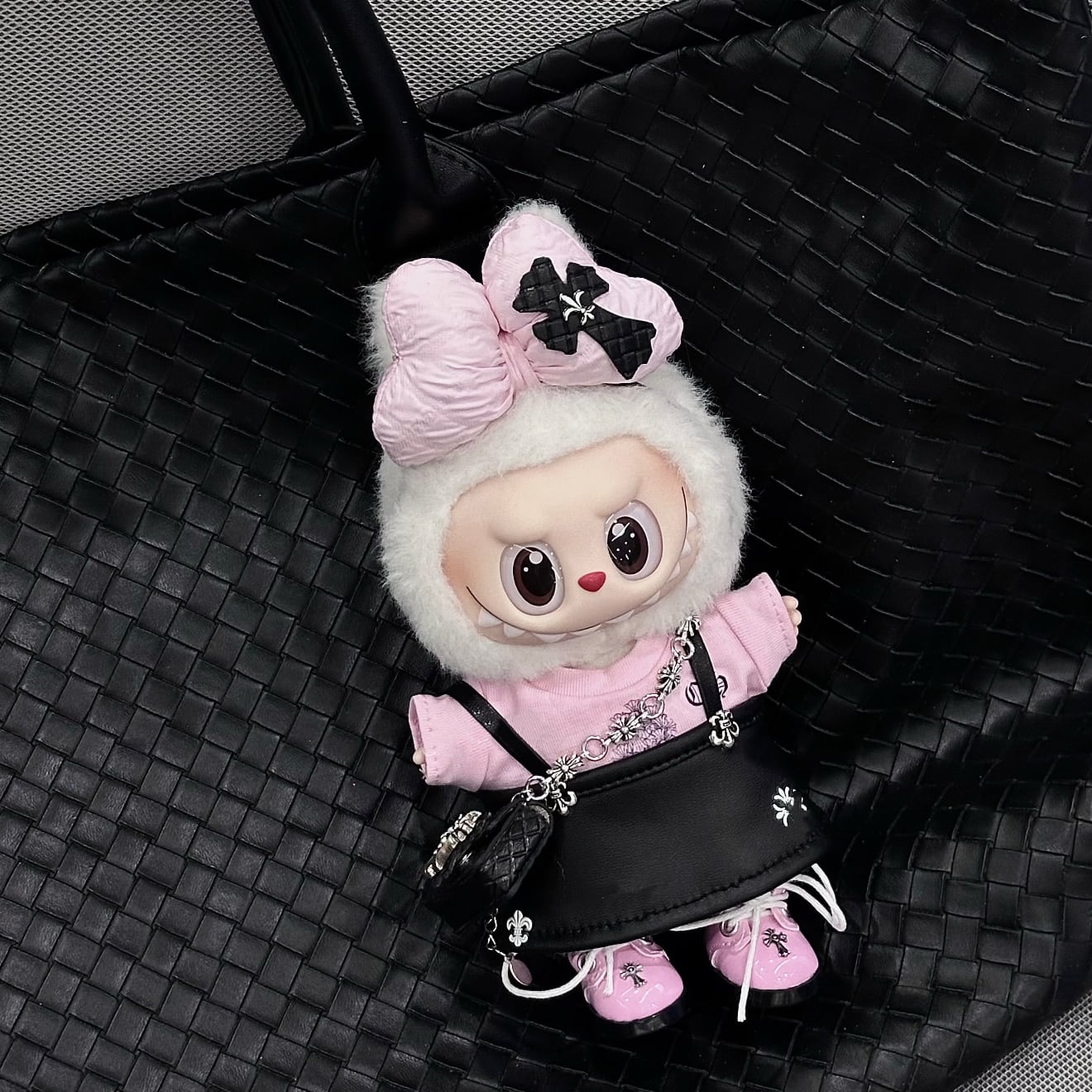 圧倒的な可愛い♡ black×ピンク 甘くてカッコイイ labubu ラブブ 15cm17cm用 フルセット ファション おしゃれ 可愛い 上品 お嬢様スタイル ドール服セット
