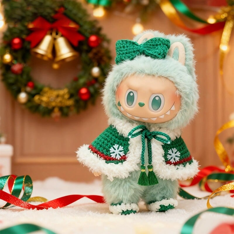 めっちゃ可愛い世界に一つのオリジナルデザイン♡ Labubu/ラブブ クリスマス 手編みニット服セット 【15cm 17cm 専用】 世界に一つの可愛さ オリジナル ドール服 クリスマス限定