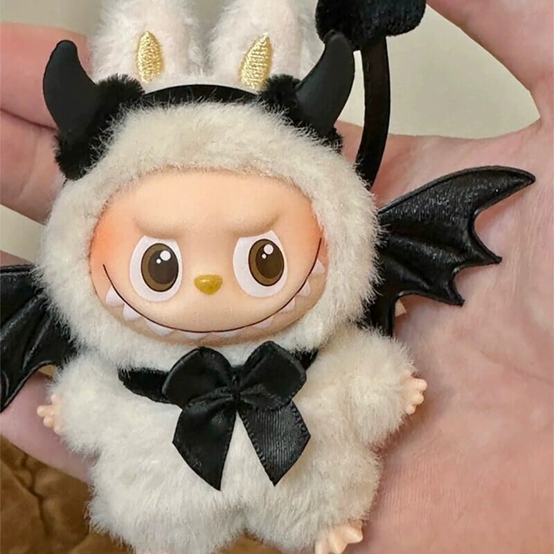 天使すぎる小悪魔がたまらない!Labubu 4.0 10cm専用 小悪魔 コスチューム ドール服 かわいい 萌え 角と尾付き 小悪魔コスチュームセット