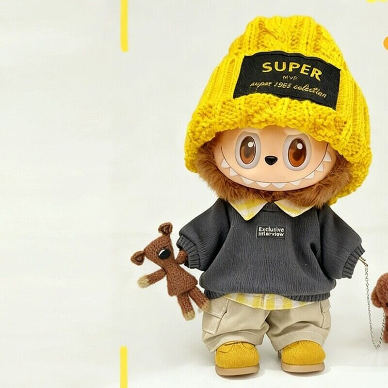 【Labubuカジュアルコーデ】イエロー系の4点セットでおしゃれに決める!クールでかっこいい普段着 Labubu 1/2/3代目 15cm 17cm 用