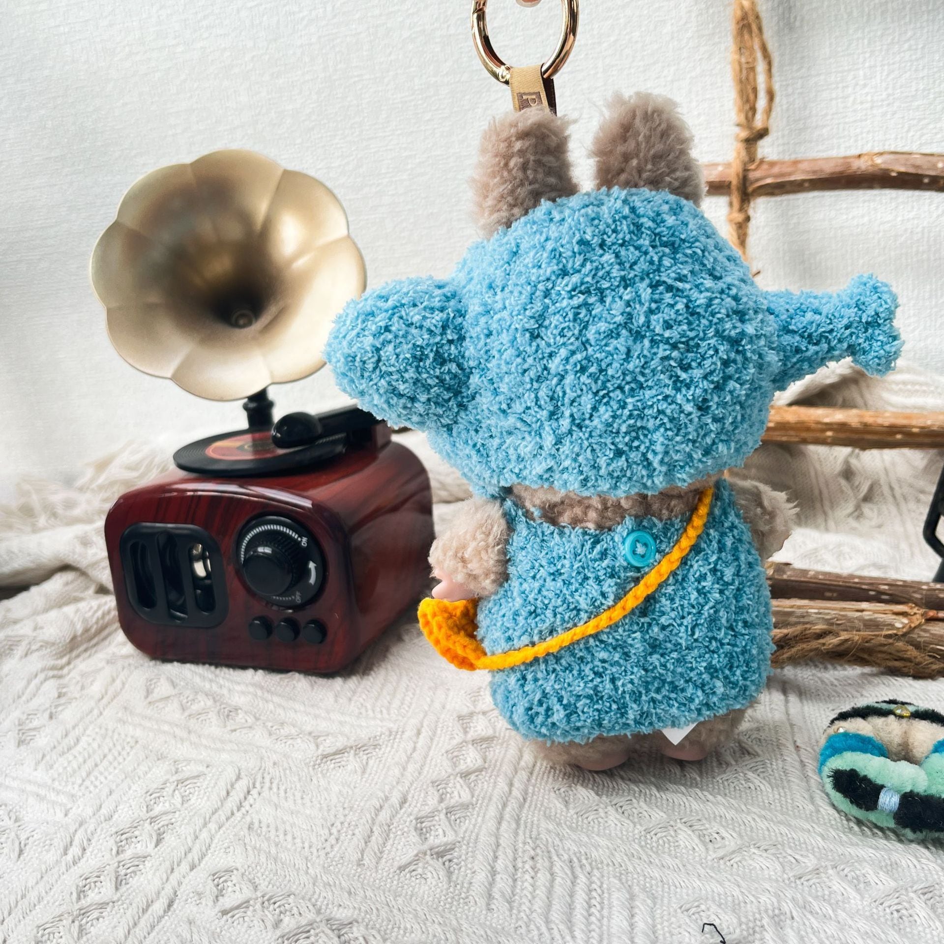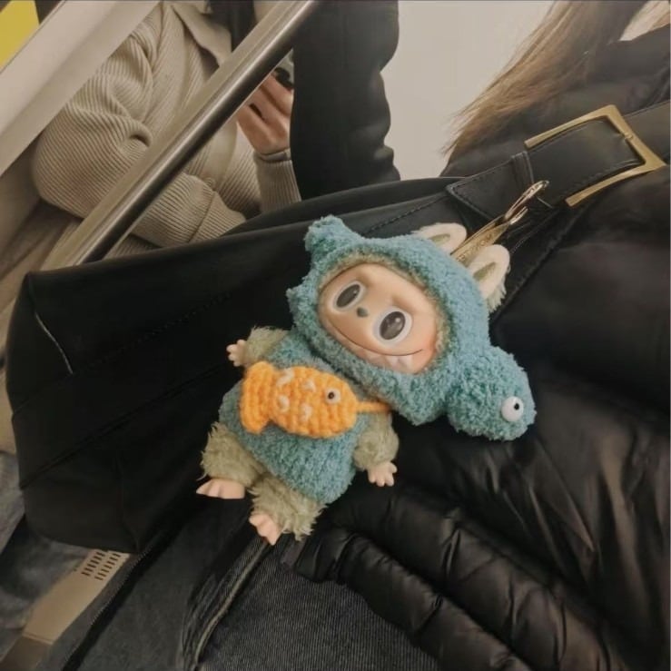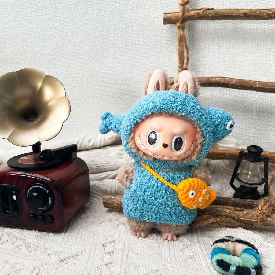 Labubuがマリン系に!ふわもこ手編み小鱼コーデ ラブブの手編み小鱼セット 15cm/17cm 斜めがけ小鱼がチャームポイント 高品質 可愛い