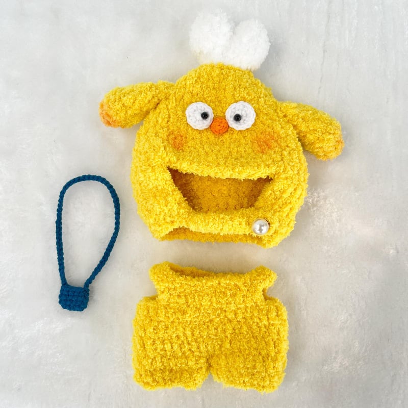 ポップな黄色が可愛い!Labubuがチキンに大変身♡ もこもこ手編み着替えセット 15cm/17cm対応 思わずニヤリのデザイン コスチューム ファン必携