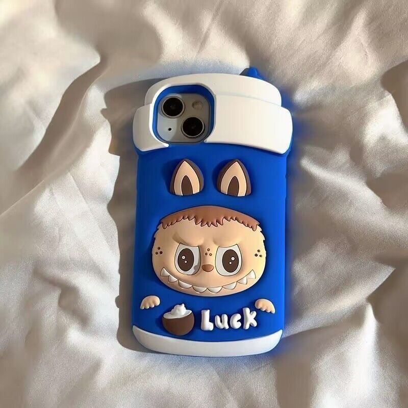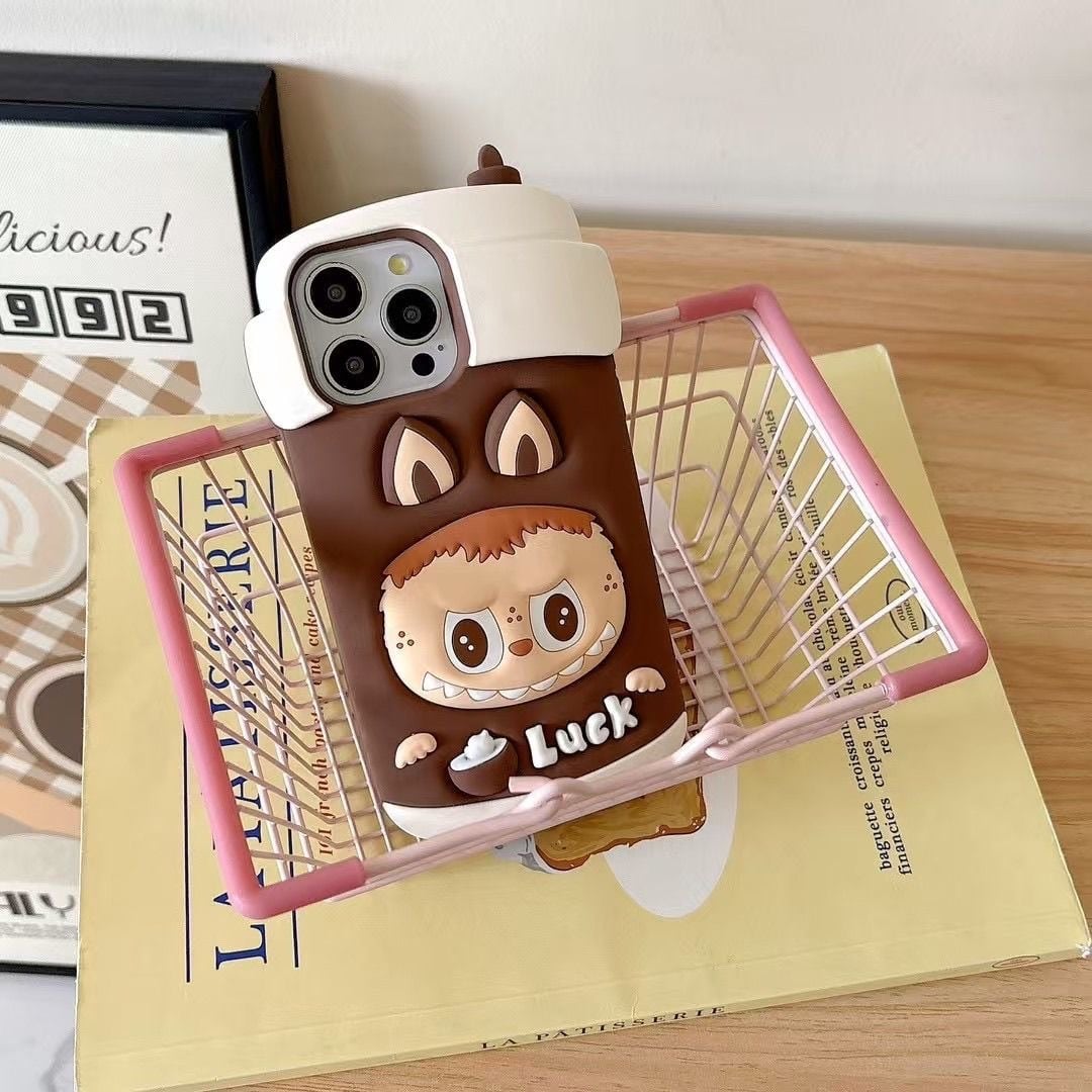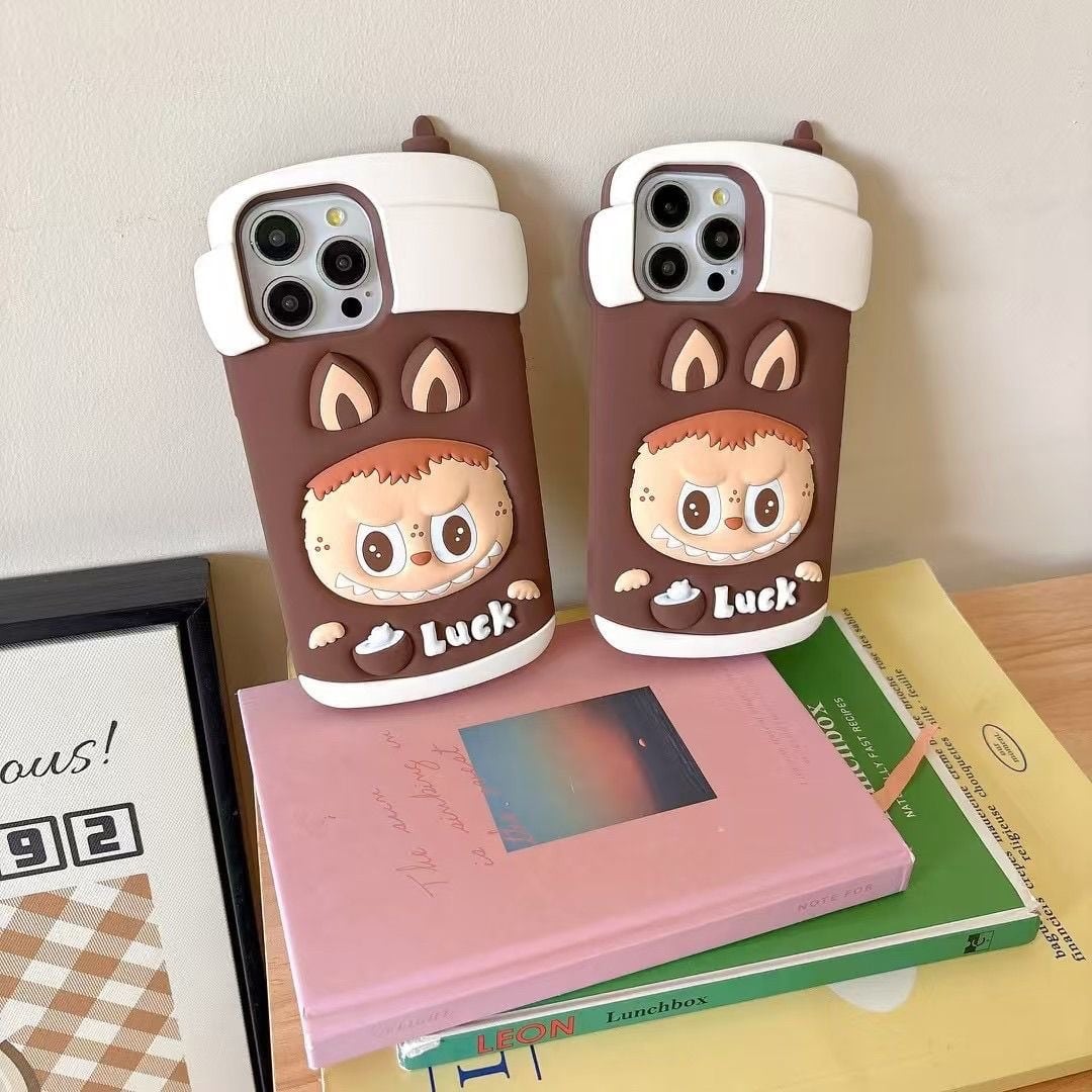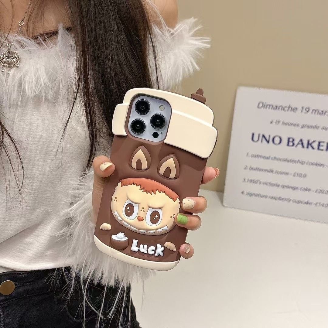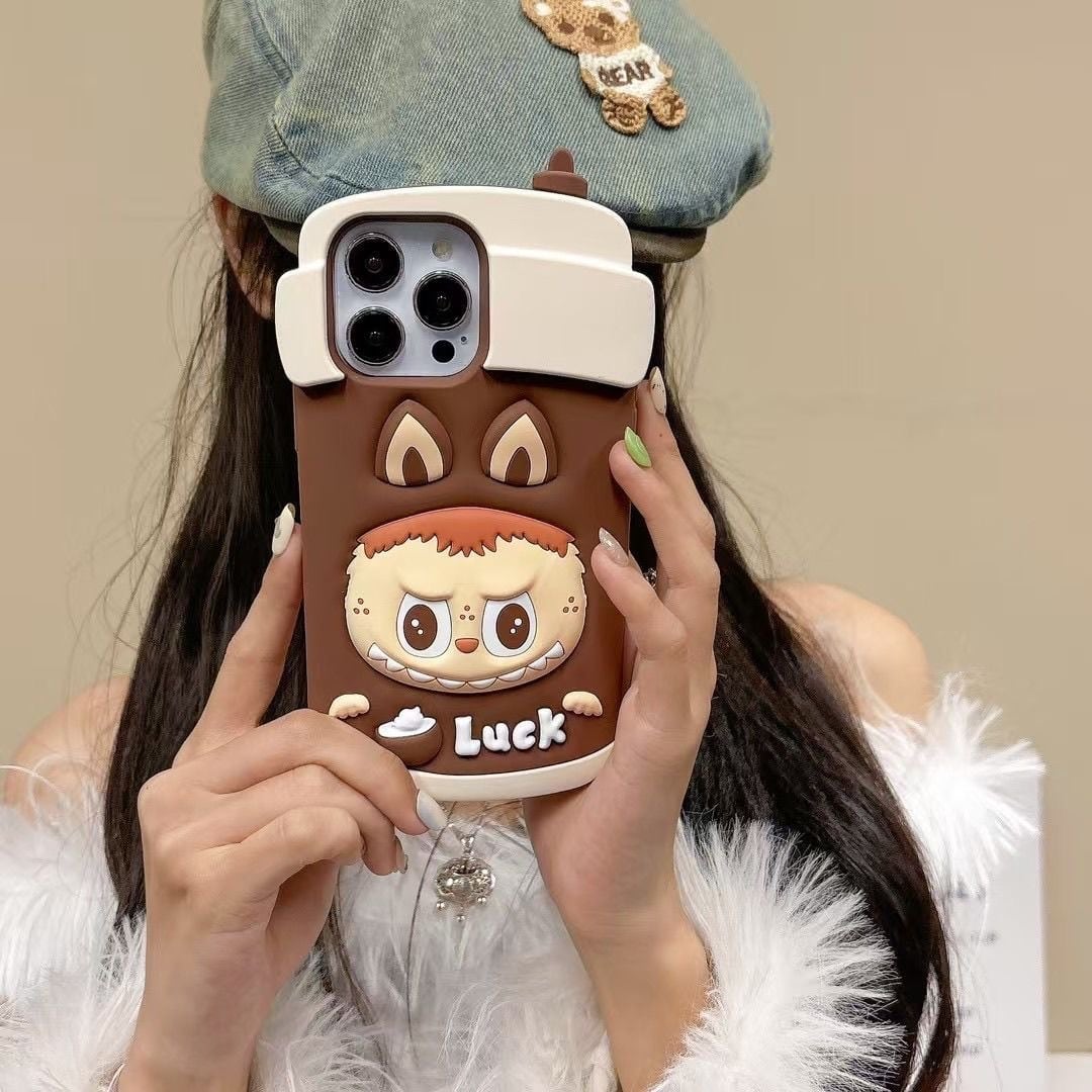 可愛い毎日♡ labubu タピオカカップ型 スマホケース!ふわふわ硅素ケース もちもち触感で落下防止!可愛くてたまらないデザイン iPhone 16-12対応 2色展開 ラブブ