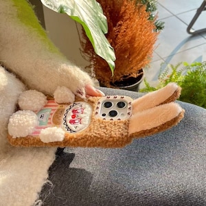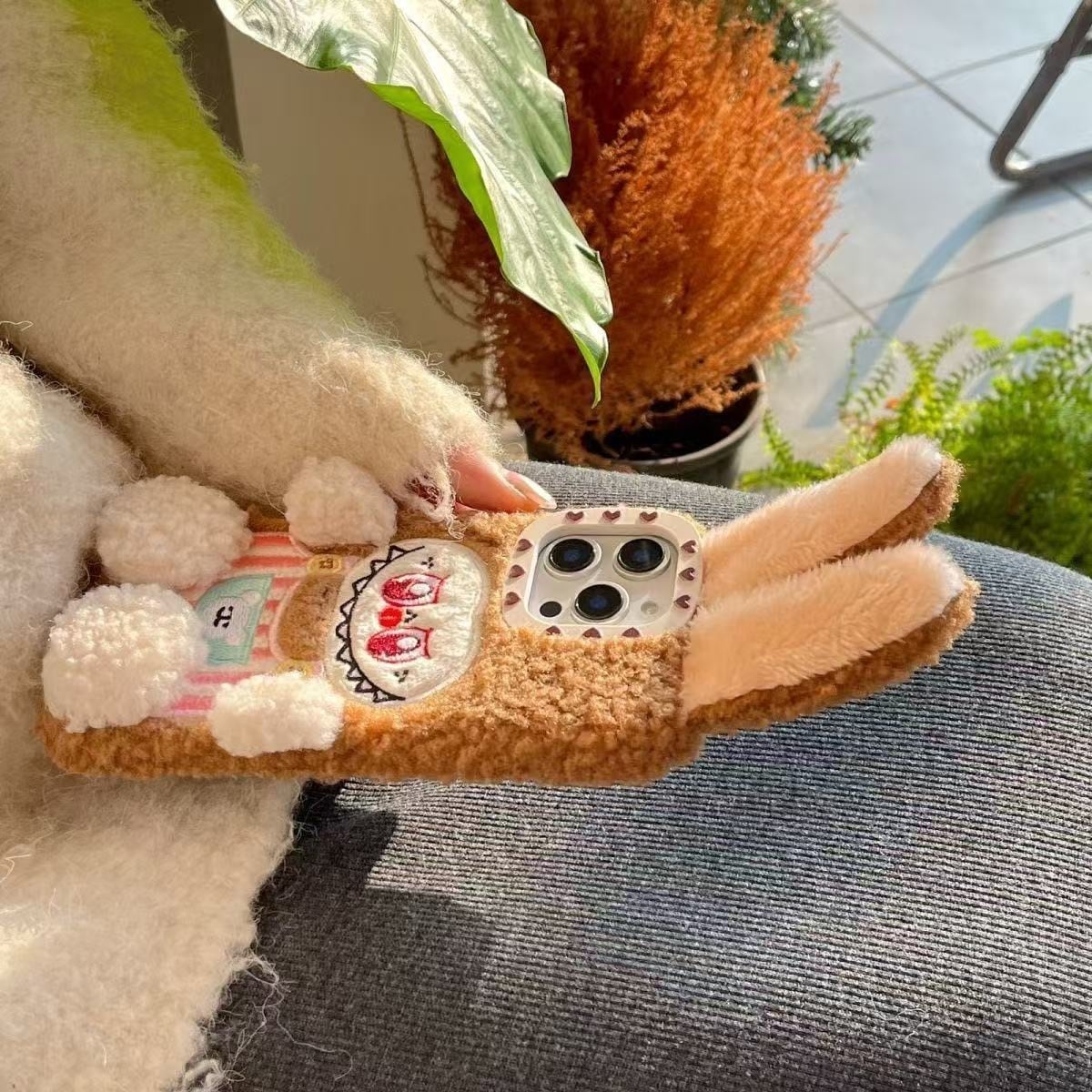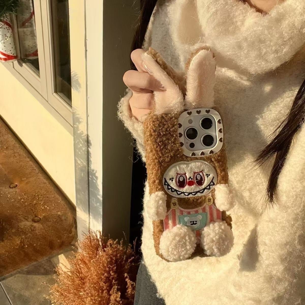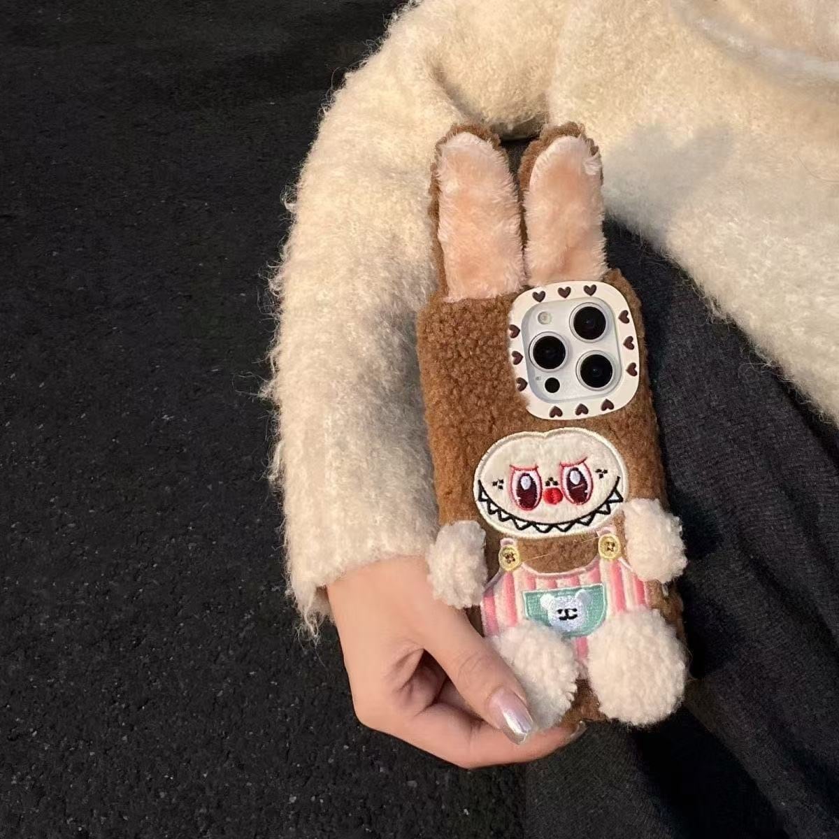 labubuのうさ耳がたまらない!親友と一緒に♡ ラブブ うさ耳もこもこケース!ふわふわタッチの秋冬新作 落下防止で可愛い iPhone 16-11対応