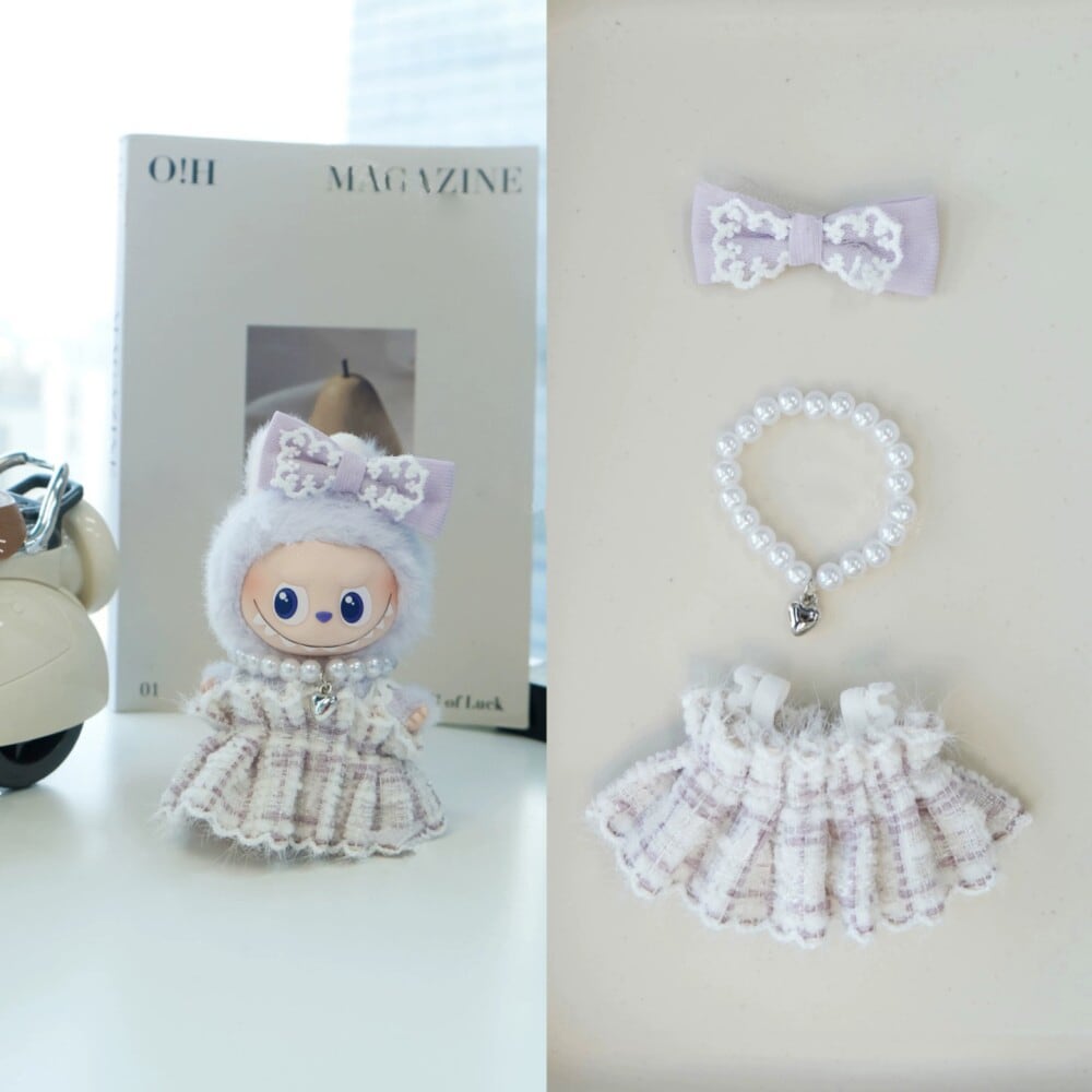 気品あふれるゴージャスコーデ!プリンセススタイル♡ labubu ラブブ4.0 10cm用 3点セット|上品で甘いプリンセス風 エレガント 可愛い