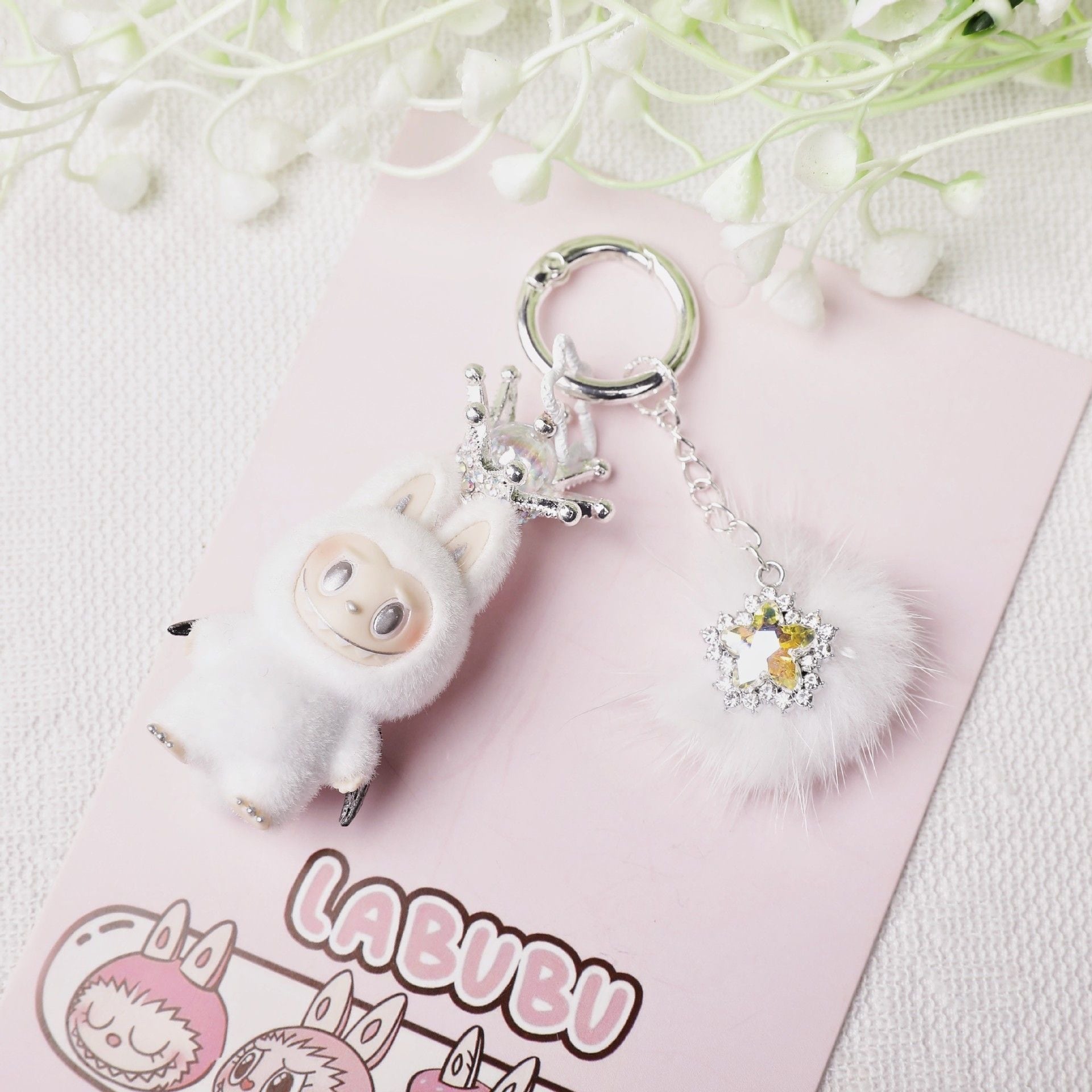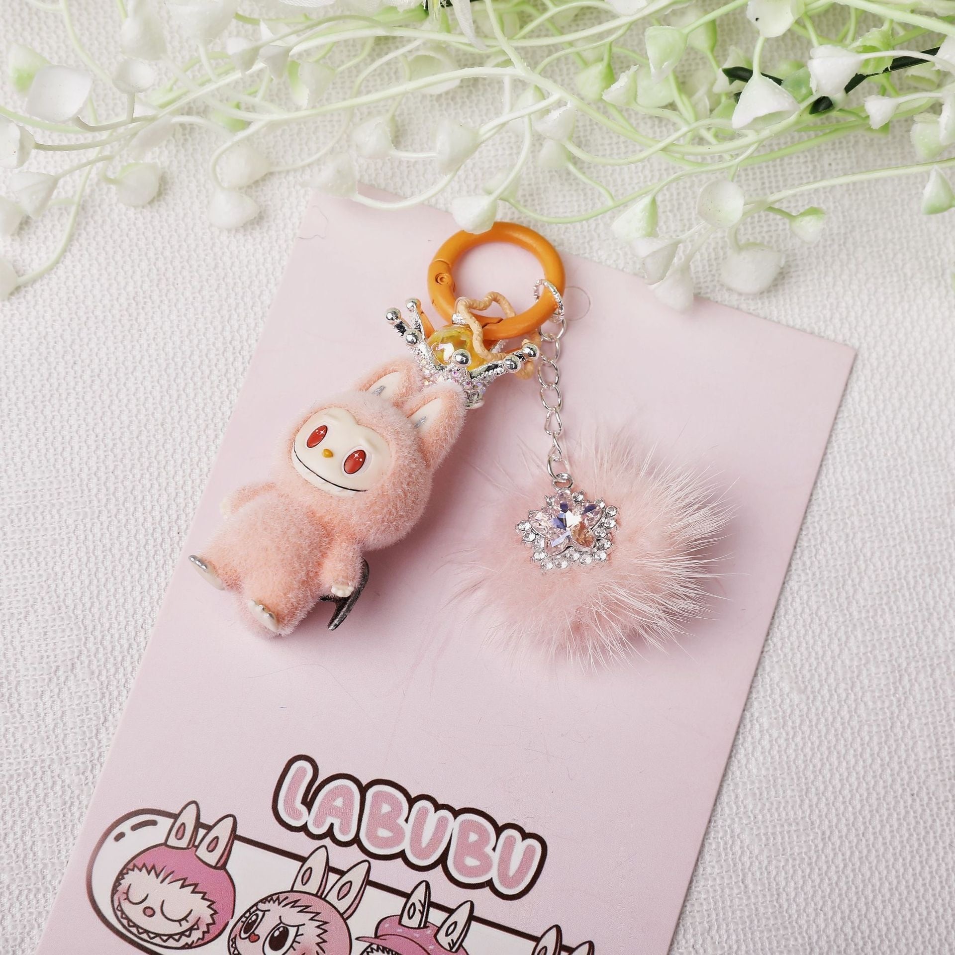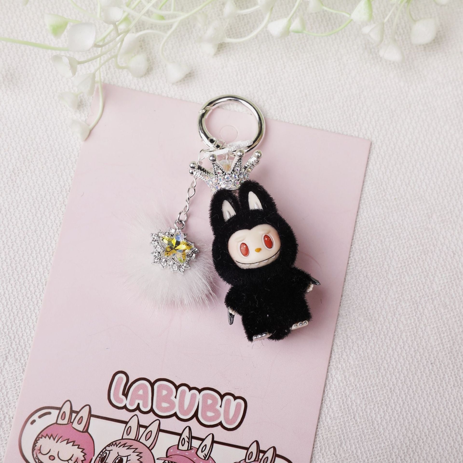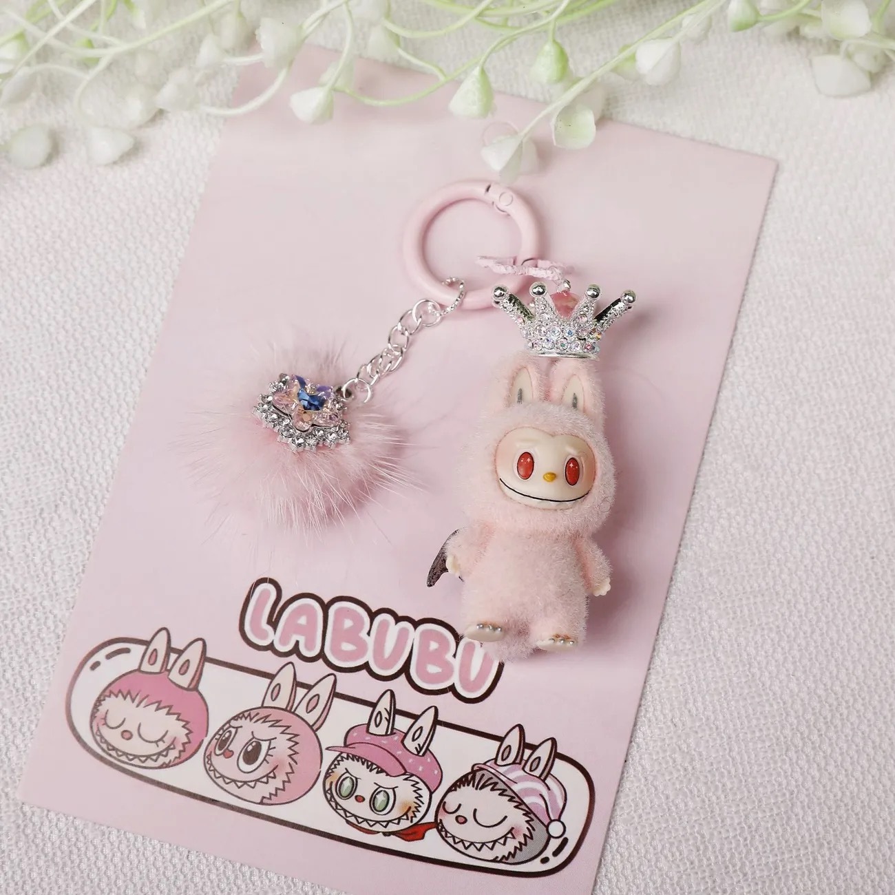 Labubu 軽奢 高級感キーホルダー♡ ラブブ 王冠 ダイヤ 毛糸 キラキラ 上品 可愛い バッグチャーム 车载 スマホストラップ