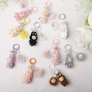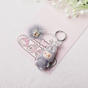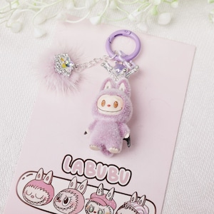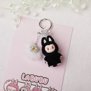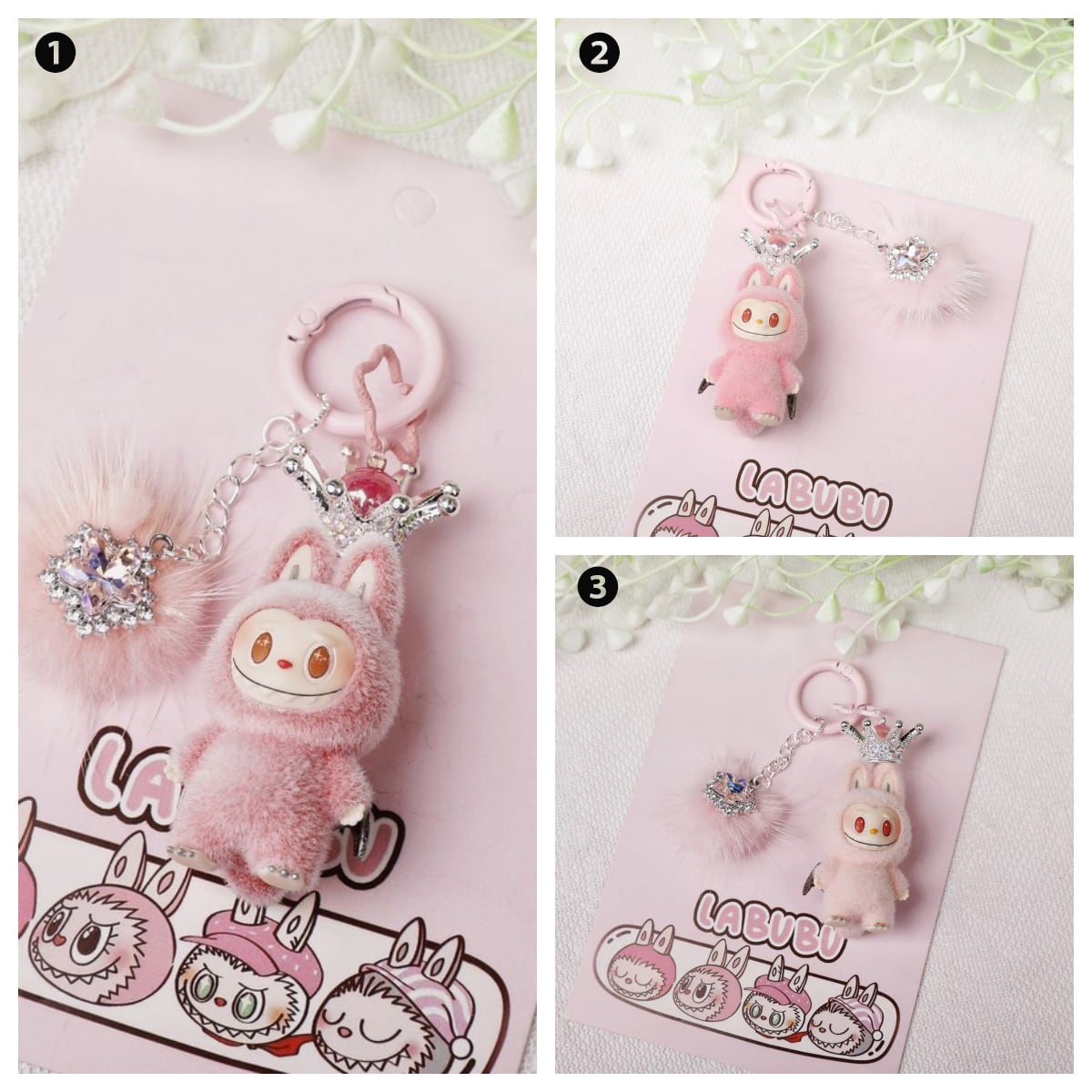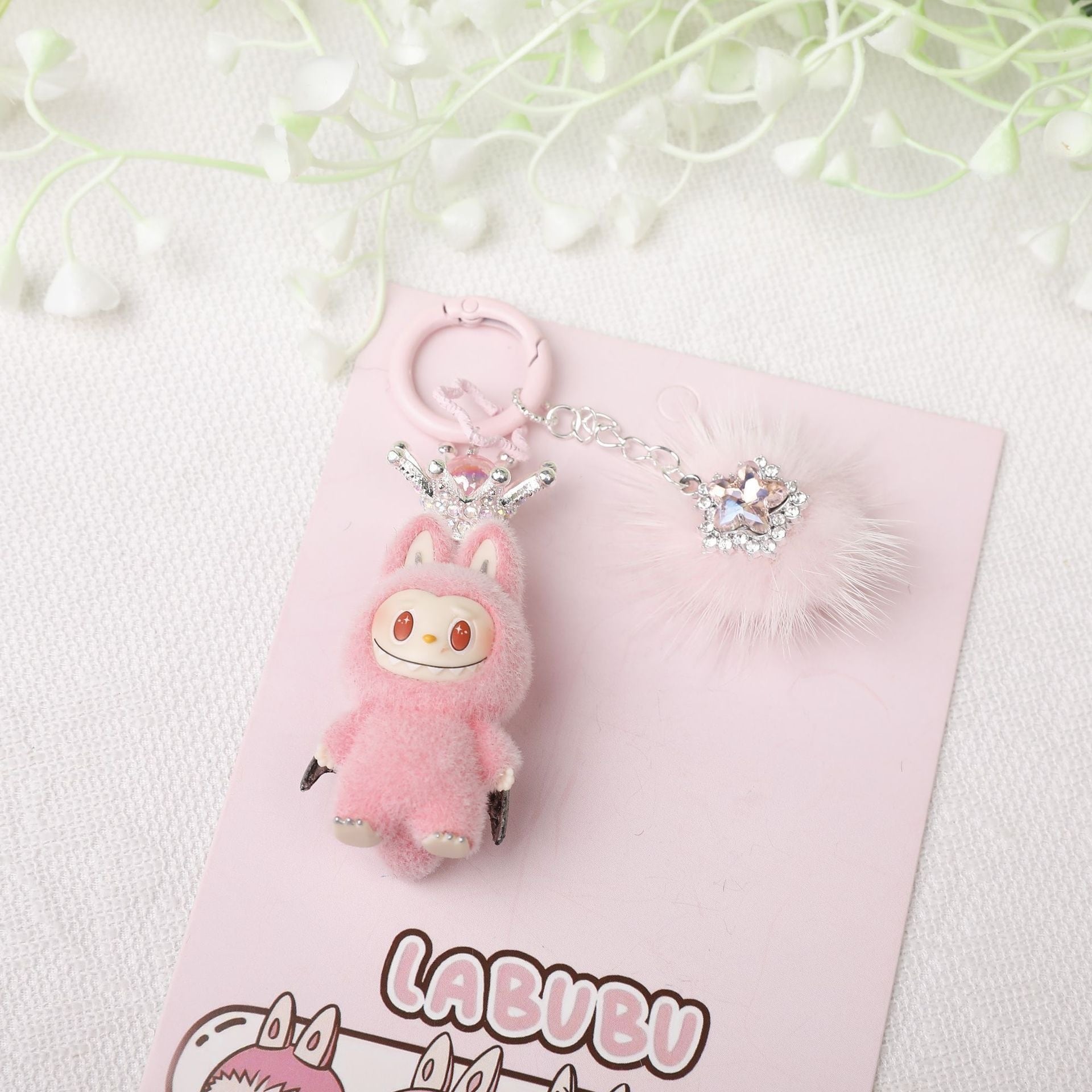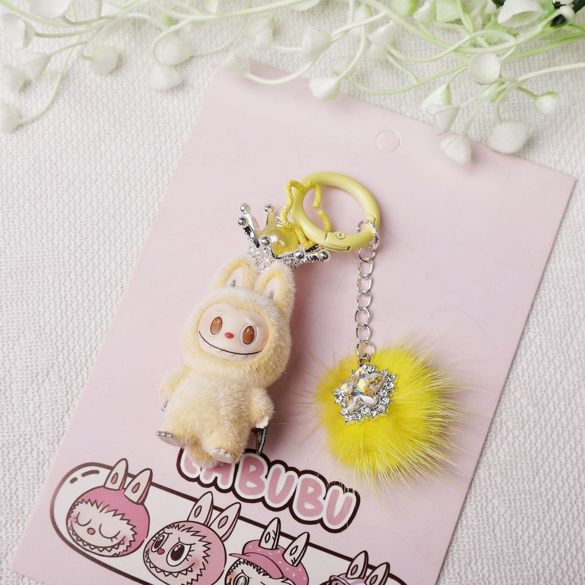 Labubu 軽奢 高級感キーホルダー♡ ラブブ 王冠 ダイヤ 毛糸 キラキラ 上品 可愛い バッグチャーム 车载 スマホストラップ