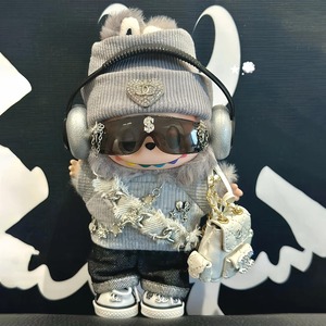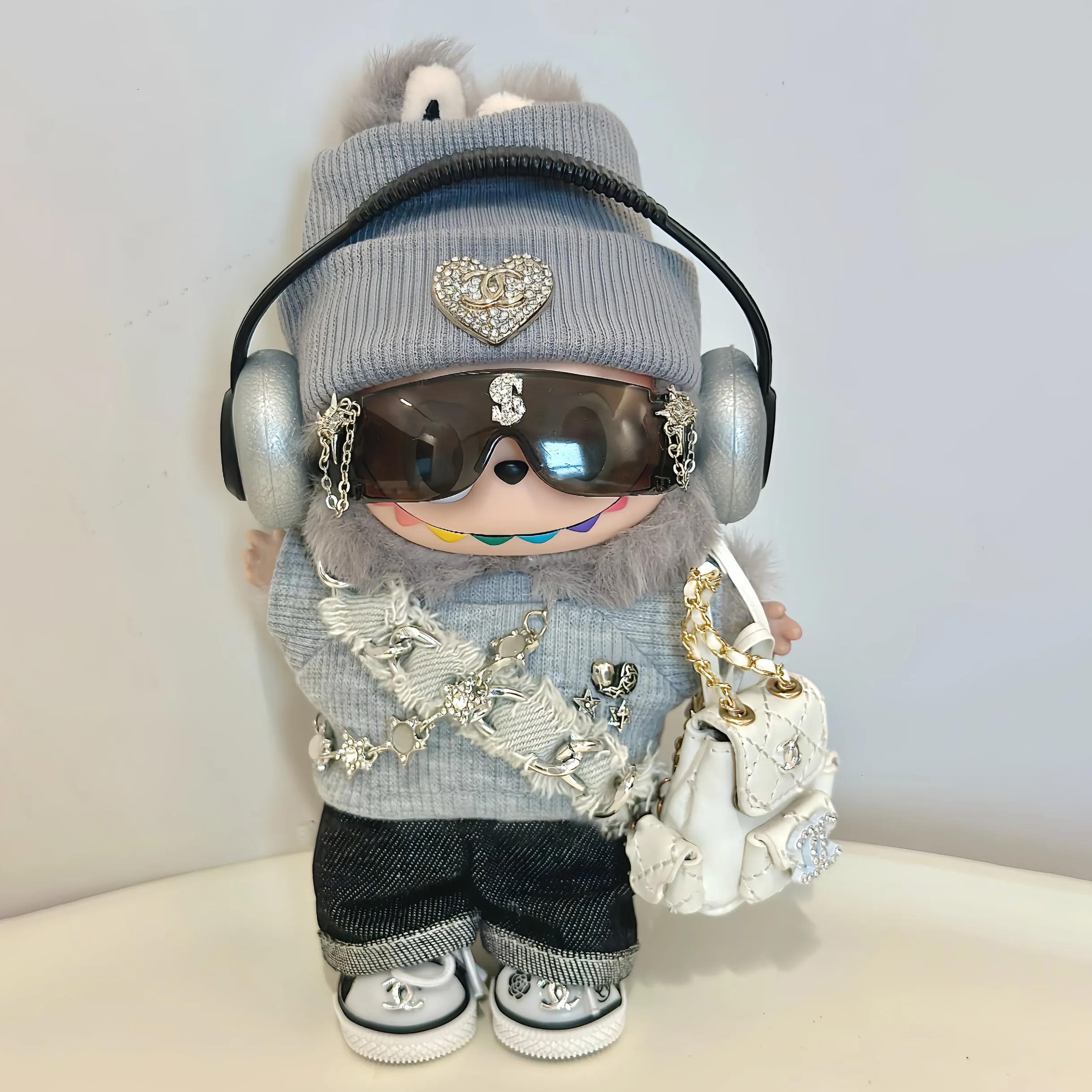 【商品名】貴公子スタイル!都会的な モード フルセット♡ Labubu 8点セット モノトーン グレー コーデ ショルダーネックレス 付属 上品 クール 15cm 17cm 高品質 フルセット ラブブ 15cm 17cm こだわり