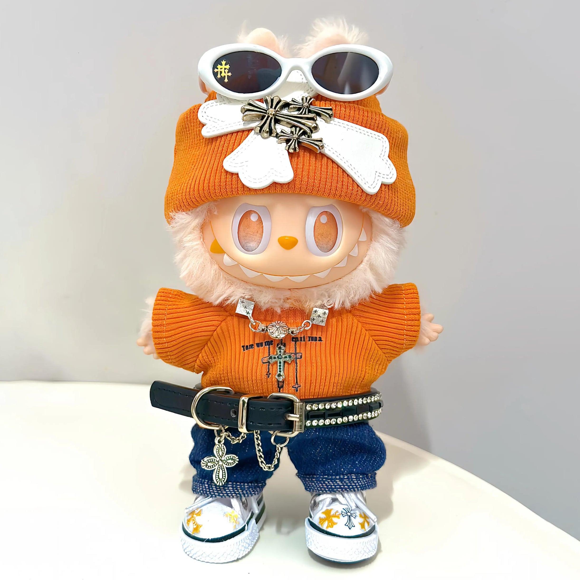 超おしゃれ 最先端オレンジ!アクセサリーたっぷり♡Labubu オレンジ コーデ ワイドベルト アクセサリー こだわり ゴージャス 15cm 17cm 魅力的 クール 高品質 ラブブ