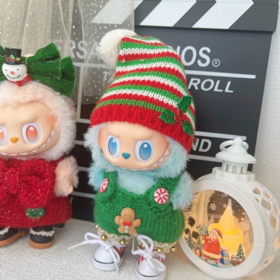 クリスマス限定めっちゃ可愛い!ペアでお揃い♡ Labubu オーバーオール ドール服 ペア 15cm 17cm 全世代対応 キュンとする可愛さ 日常使い クリスマス プレゼント ラブブ
