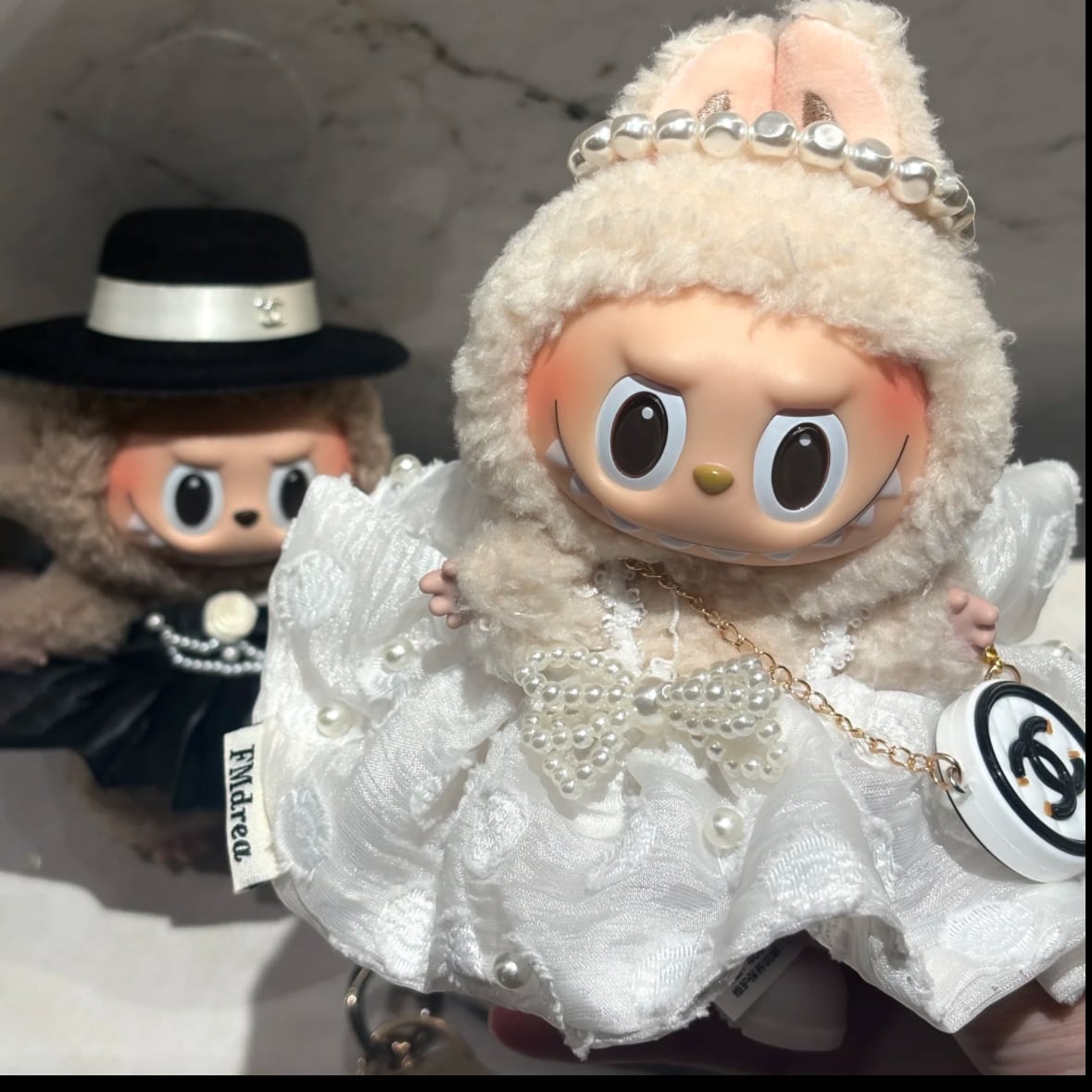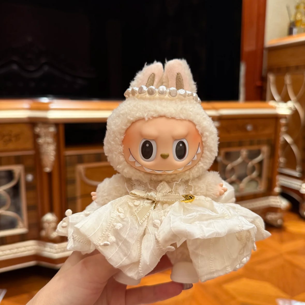 パール飾りが豪華なプリンセスドレス!上品 甘い 可愛い♡ Labubu 純白 ウェディングドレス プリンセス 3点セット 上質レース エレガント 上品 甘い 可愛い 15cm 17cm ラブブ 着せ替え フォーマル ラブブ