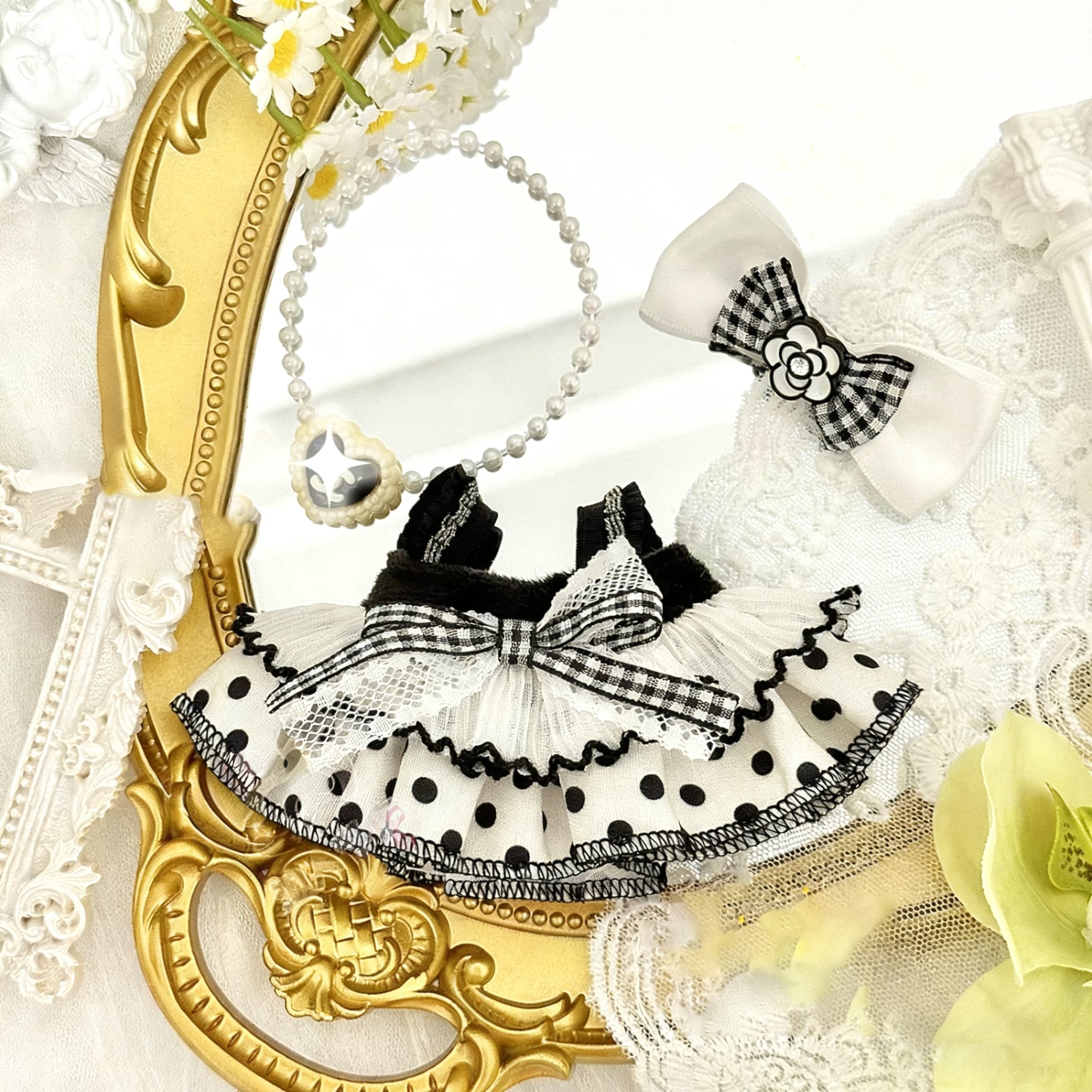 【商品名】シンプル おしゃれ♡ Labubu モノクロ エレガント 4点セット 洗練された デザイン 上質 15cm 17cm 対応 ラブブ 大人可愛い 着せ替え