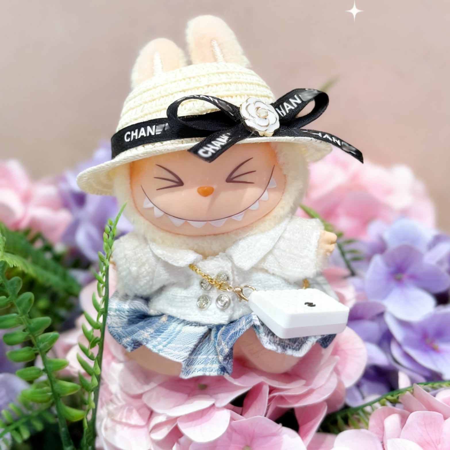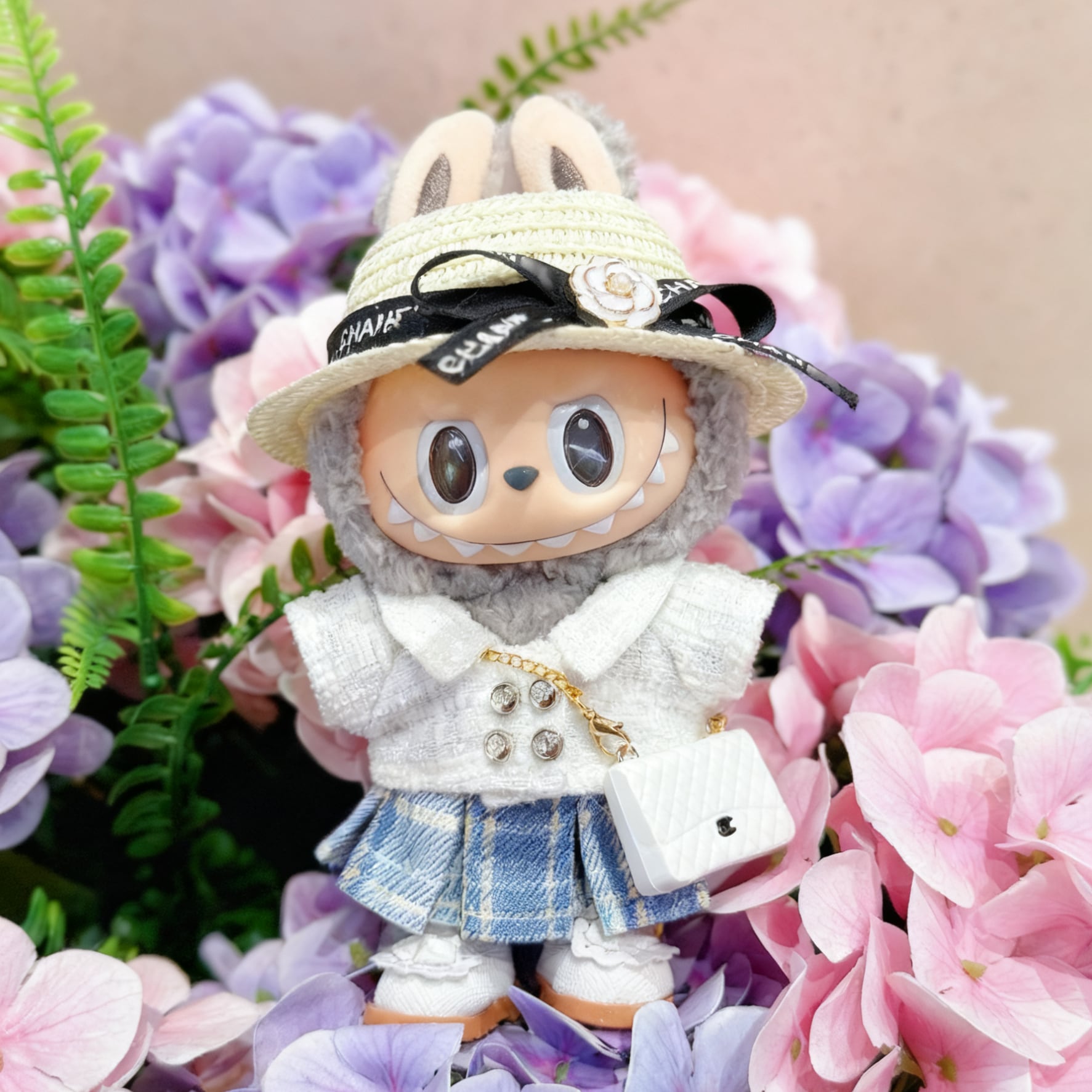 お嬢様スタイル!上品 可愛い 気品 Labubu 爽やかな雰囲気 お嬢様 コスチューム 4点セット 淡い カラー ふんわり 上品 15cm 17cm ラブブ 着せ替え ラブブ