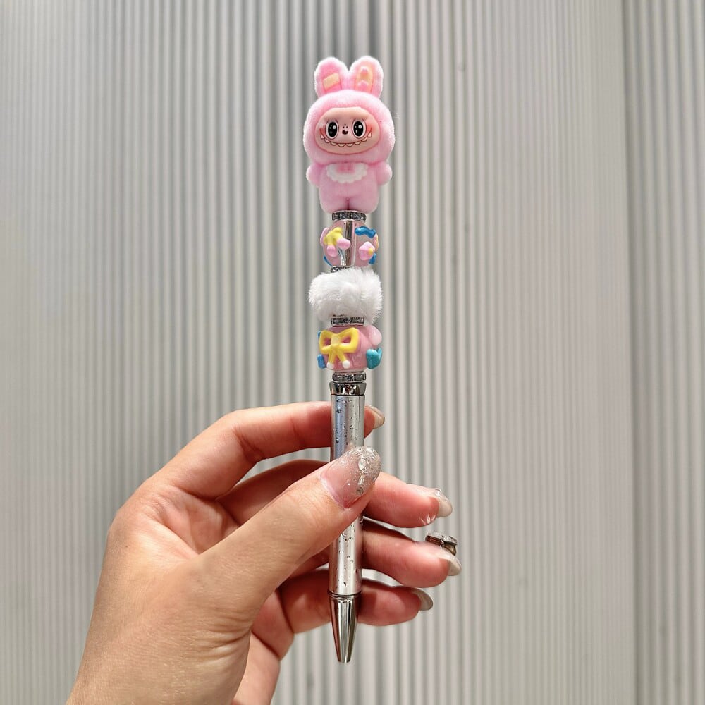 【商品名】ラブブ labubu 5色展開 モケモケマスコット付きボールペン タッチパネル対応 速乾インク インスタ風