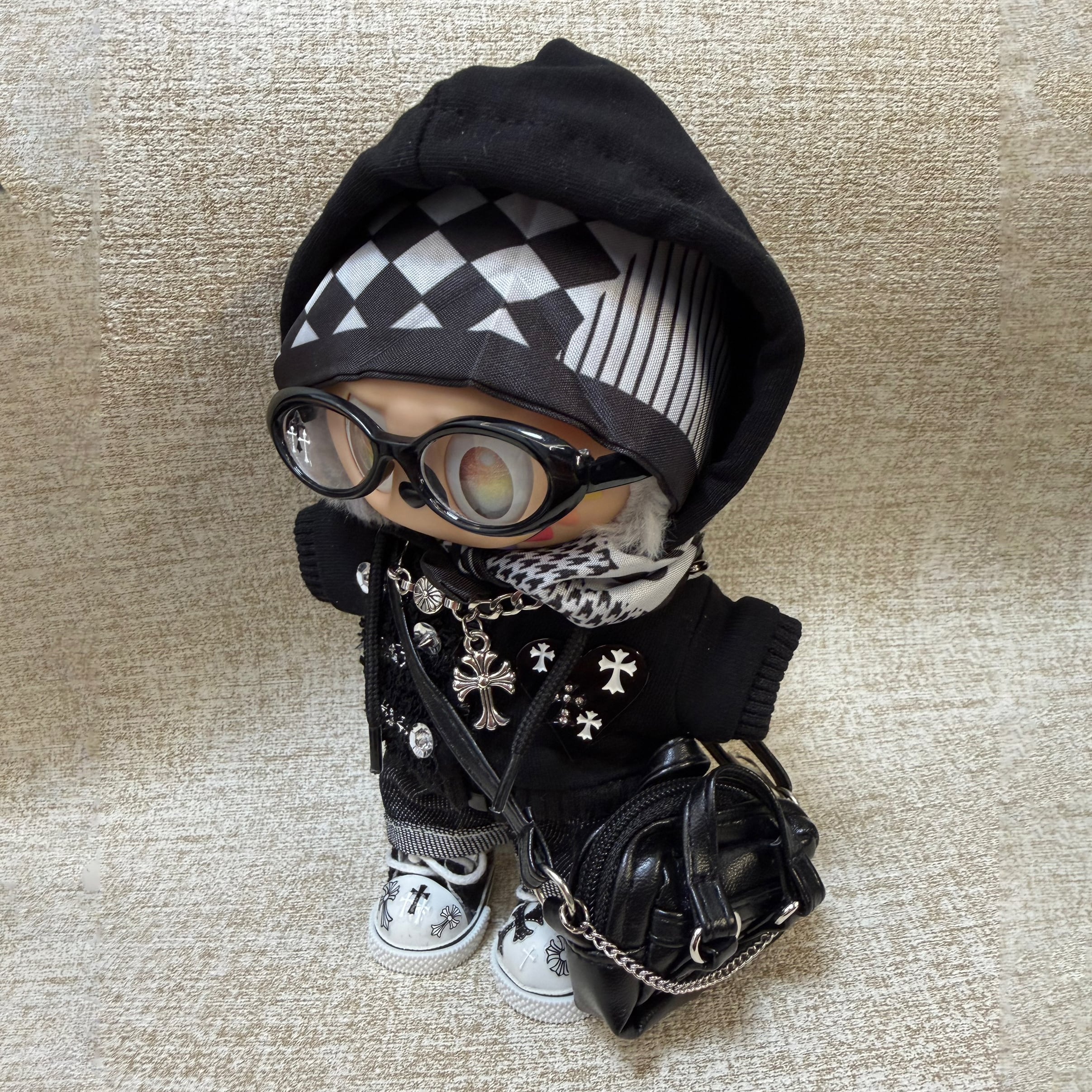 【商品名】モノクロチェックの最先端!クールでかっこいい♡ Labubu 着せ替えセット クールでスタイリッシュ 15cm/17cm 対応 ラブブ おしゃれ