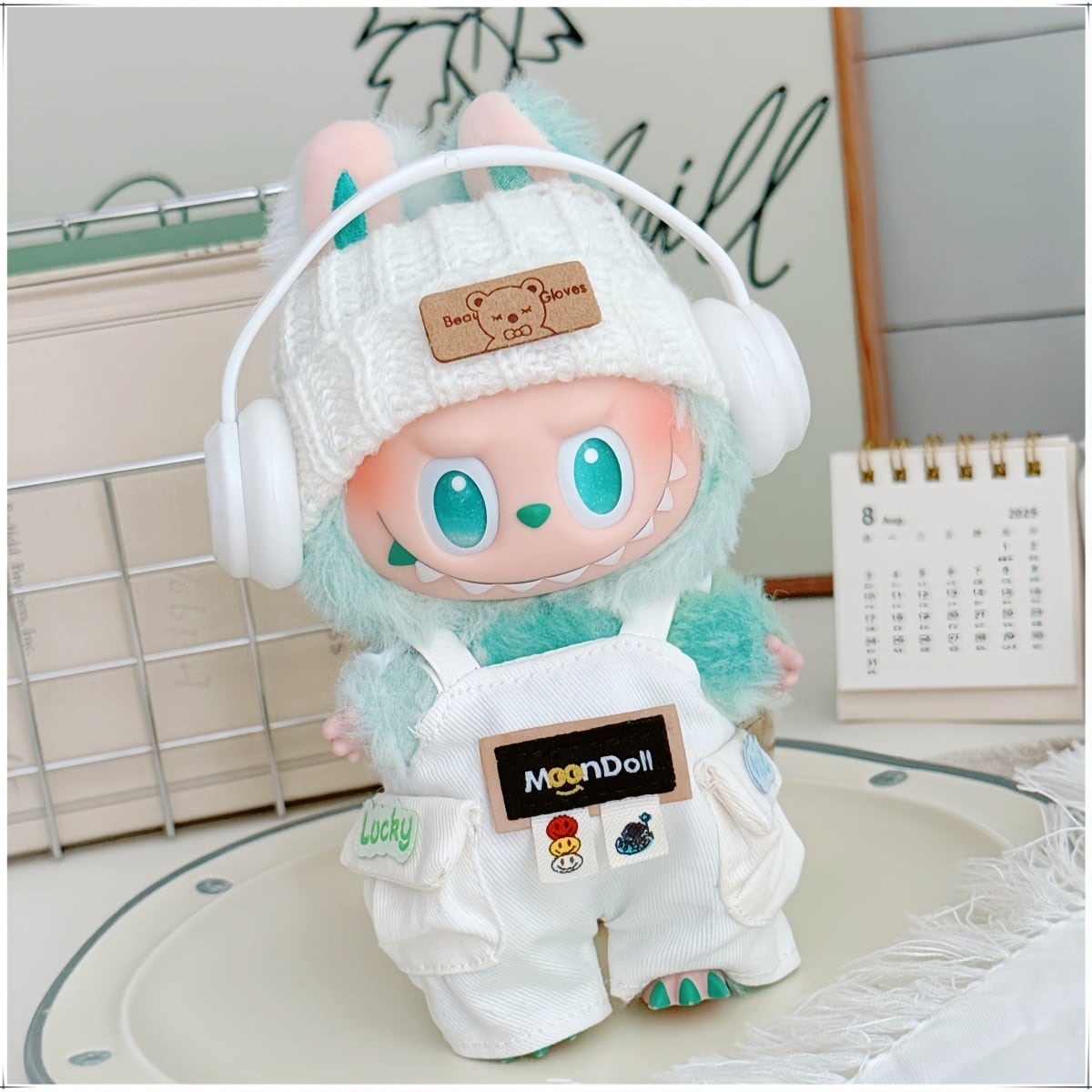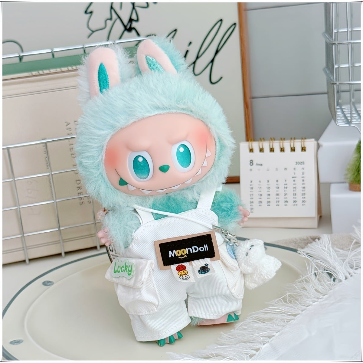 日常使いの純白コーデ!純白♡ Labubu着せ替え オーバーオールセット カジュアルで可愛い 5点セット 1/2/3世代対応 ラブブ 15cm17cm対応