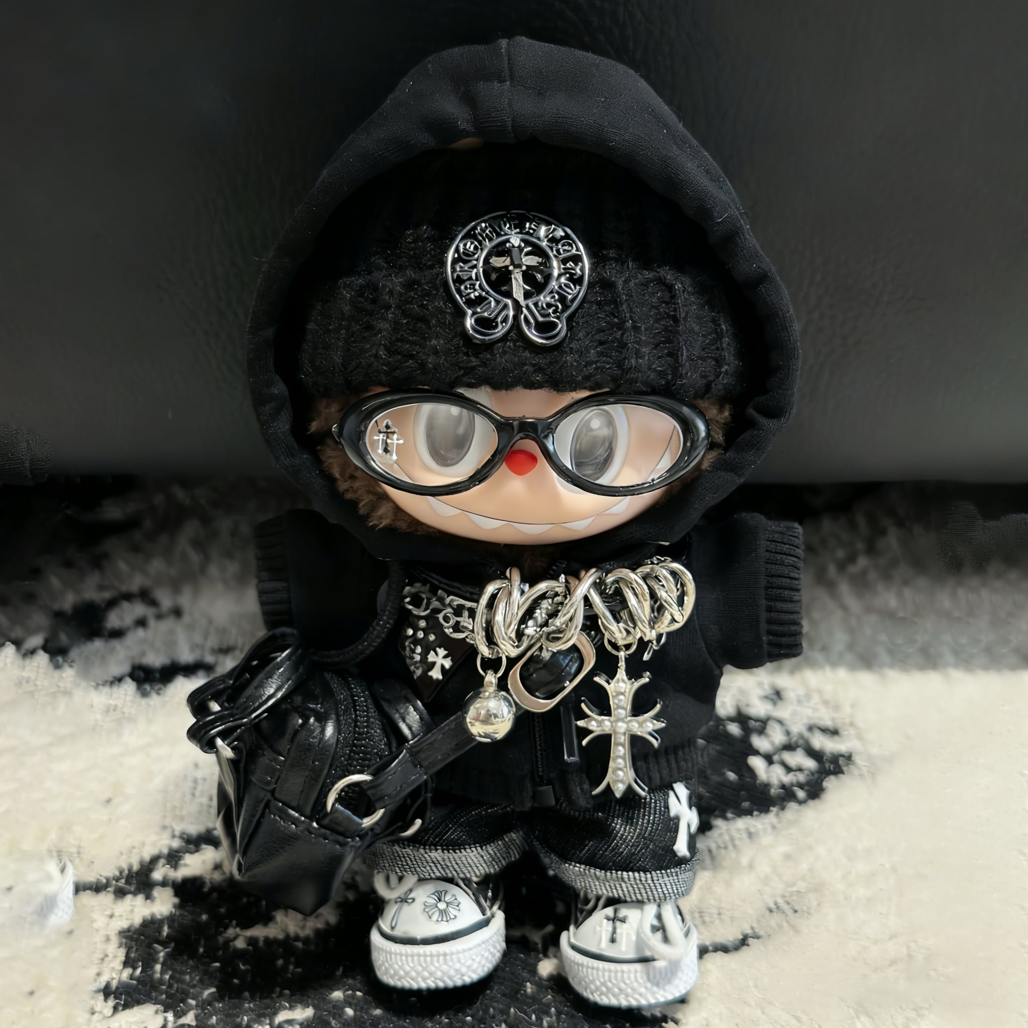 大人のクールスタイル!シックでかっこいい6点セット♡ labubu 1/2/3世代 オールブラック コーデ クール ストリート系 15cm17cm 着せ替え
