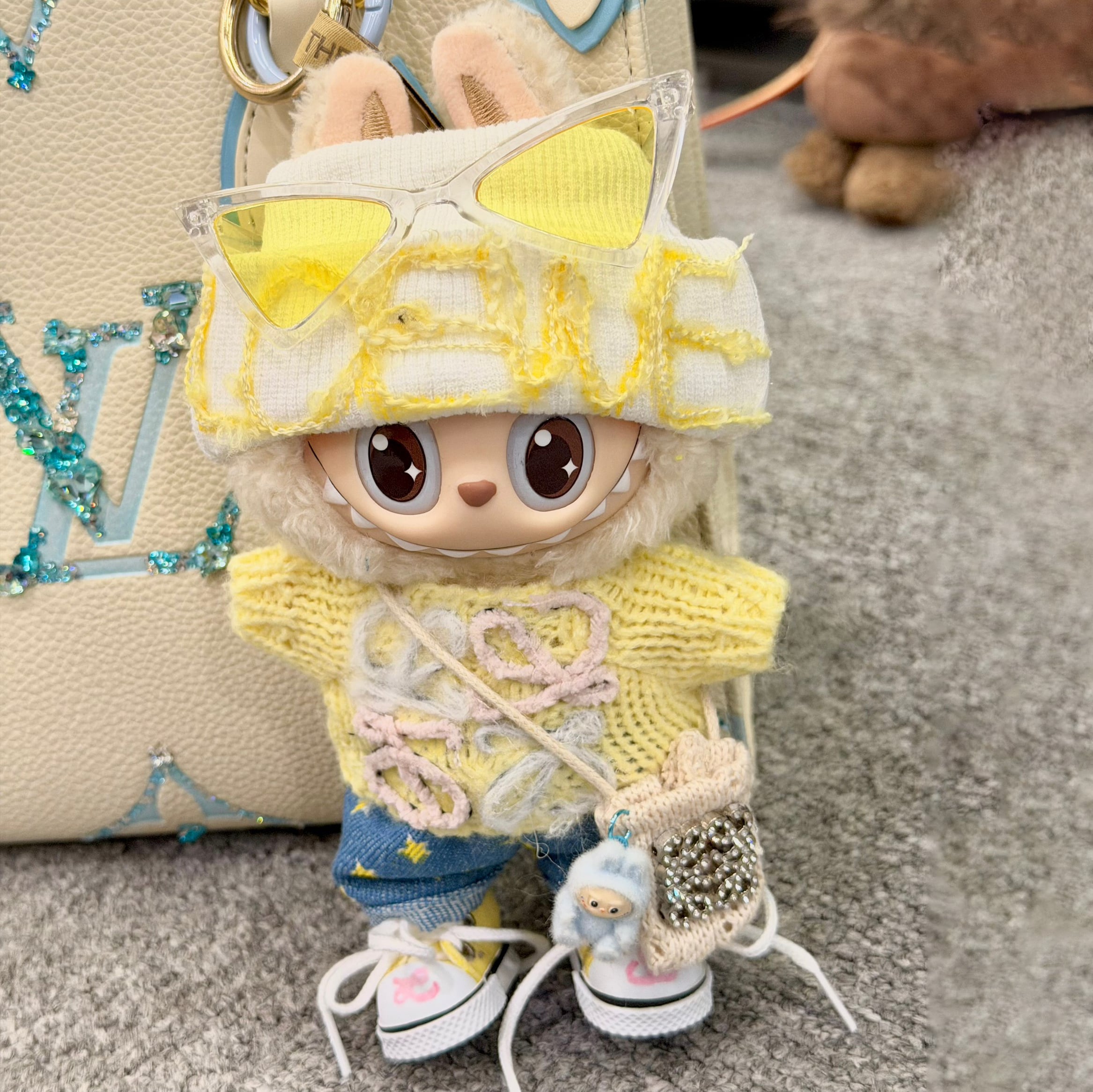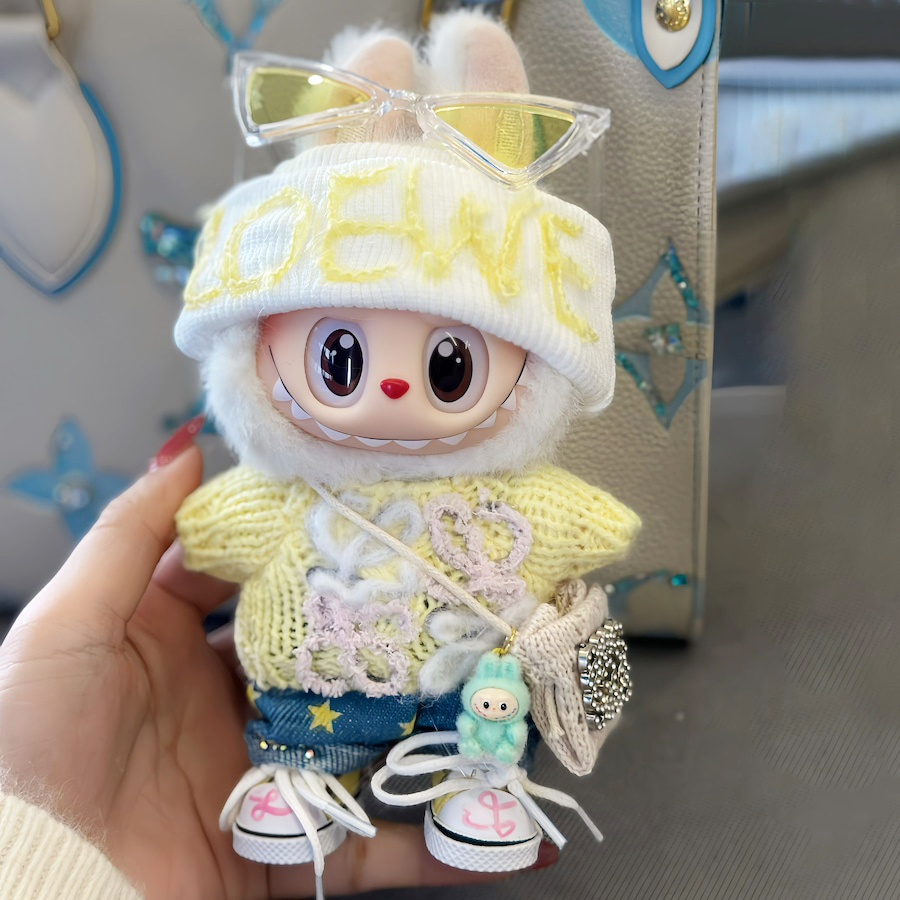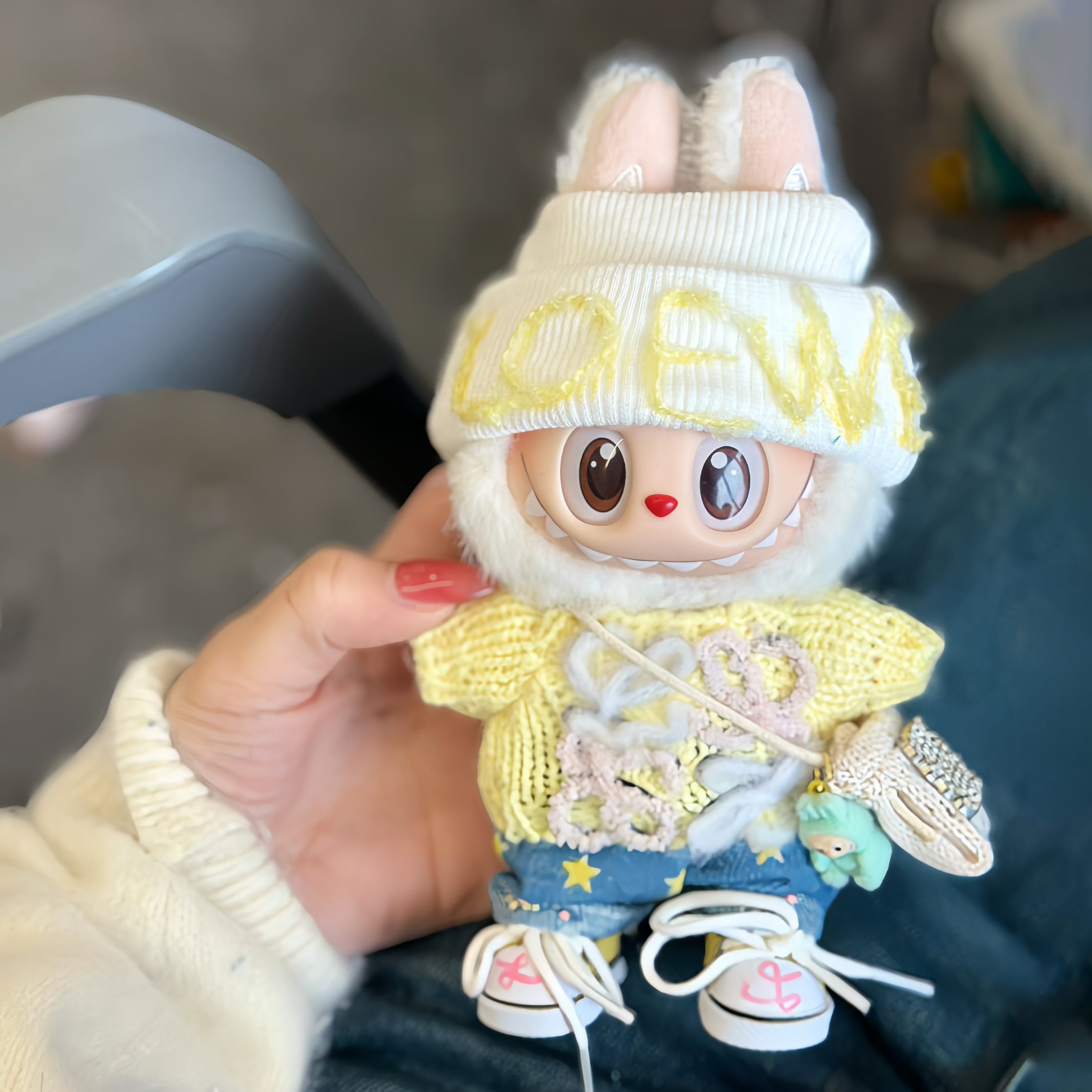 高級感のあるおしゃれ!labubu ラブブ秋冬ドール服 ホワイト&イエロー 温かみ配色 15cm/17cm おしゃれ プレミアム かわいい