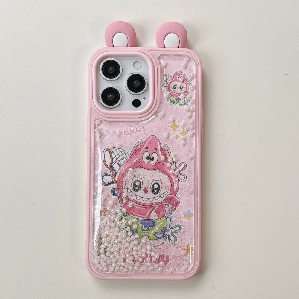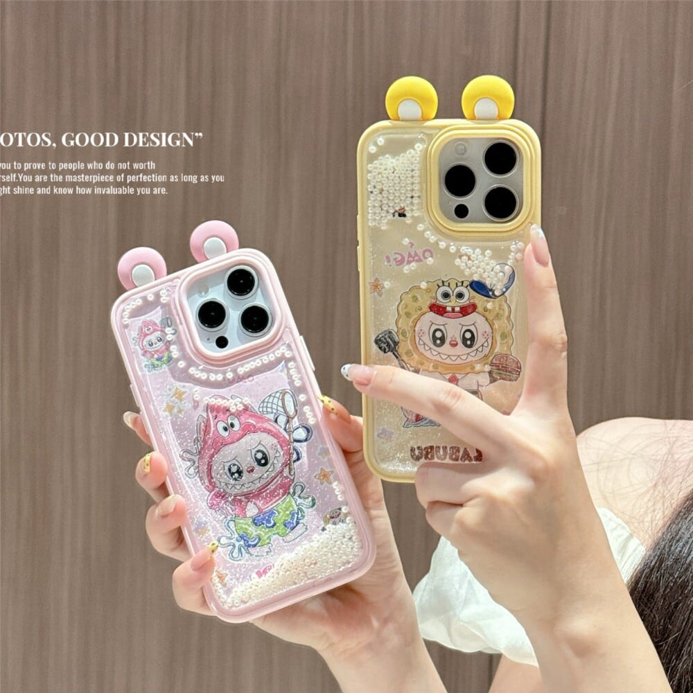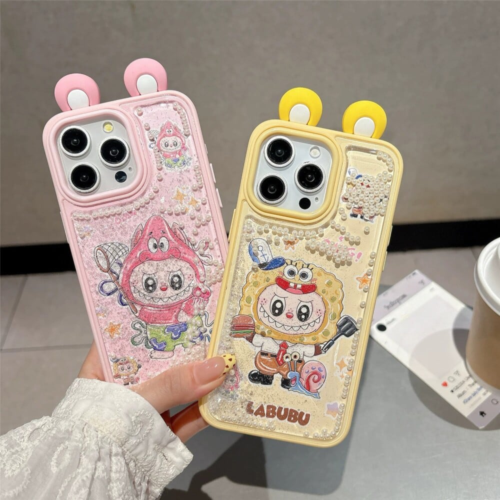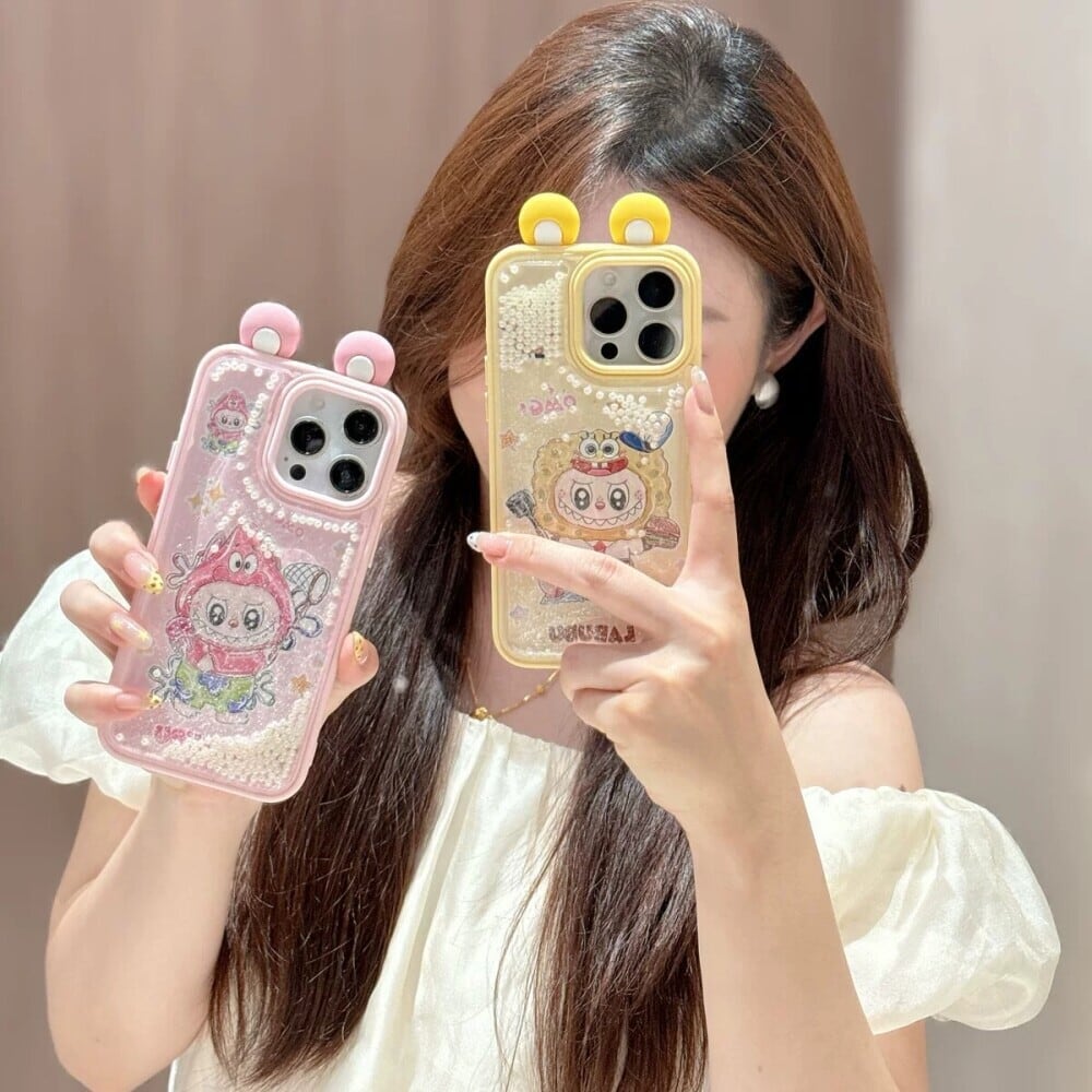 ゆらゆら動くパール デコケース!飛び出る耳が激カワ♡ labubu ラブブ パールサンドストーム 光沢ある 高品質 日本輸入品 人気アイテム iPhone16 15ProMax