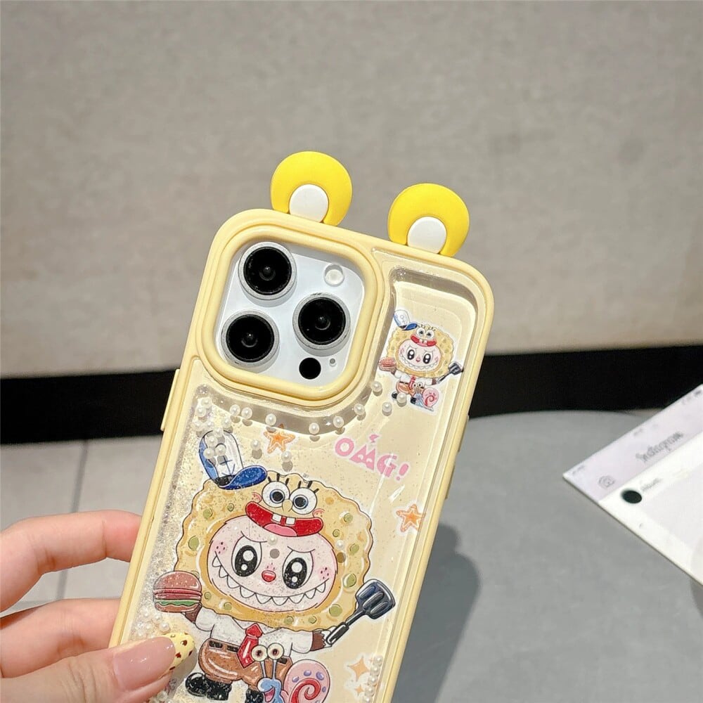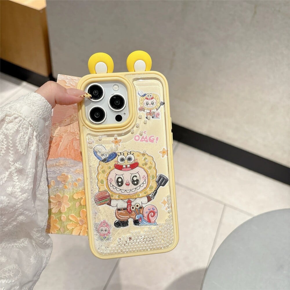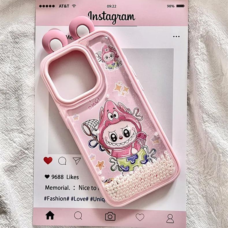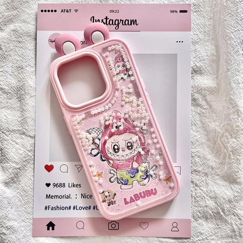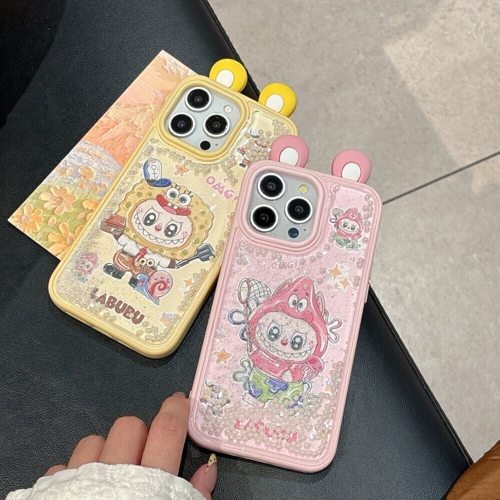 ゆらゆら動くパール デコケース!飛び出る耳が激カワ♡ labubu ラブブ パールサンドストーム 光沢ある 高品質 日本輸入品 人気アイテム iPhone16 15ProMax
