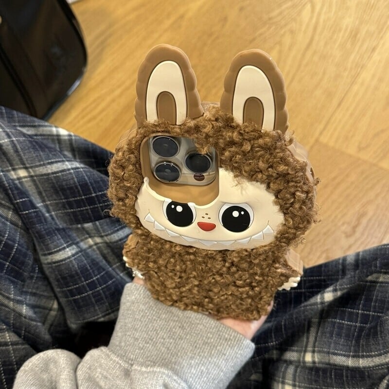 デコPhoneカバー 冬のかわいい!あったかモフモフ♡ labubu ラブブ デコケース ほっこり可愛い ins風 iPhone機種対応 iPhone 16/15/14 Pro Max