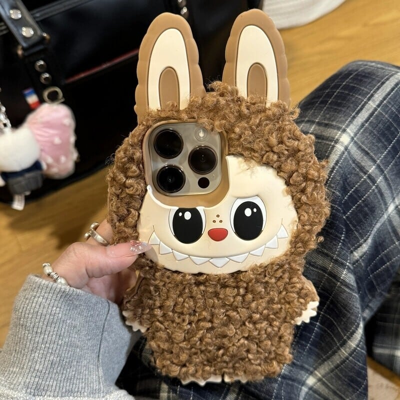 【商品名】デコPhoneカバー 冬のかわいい!あったかモフモフ♡ labubu ラブブ デコケース ほっこり可愛い ins風 iPhone機種対応 iPhone 16/15/14 Pro Max
