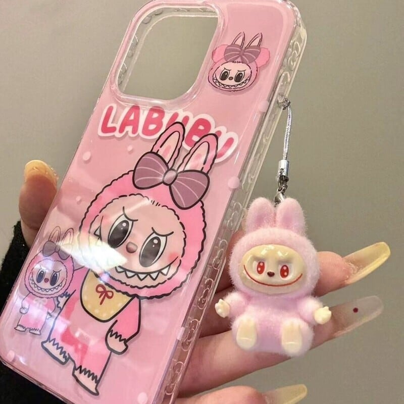 夢かわいい!ストラップ付き♡ labubu ピンクベース ラブブ デコケース プレミアム 可愛い 上質感 上品で可愛い 落下防止