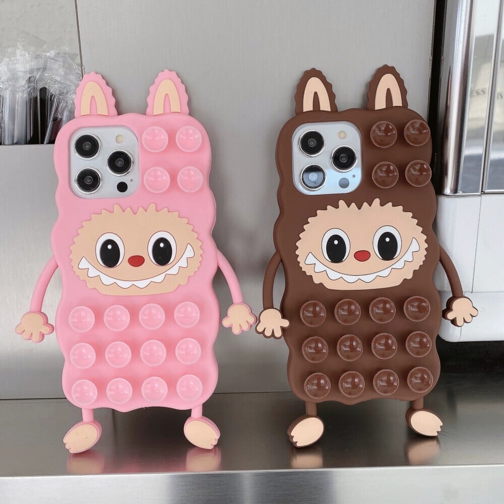 便利な吸盤付き!カップルにぴったり♡ 吸盤付き ラブブ iPhoneケース 立体耳 ソフトシリコン 全機種対応 (iPhone 16/15/14 Pro Max) ポップマート