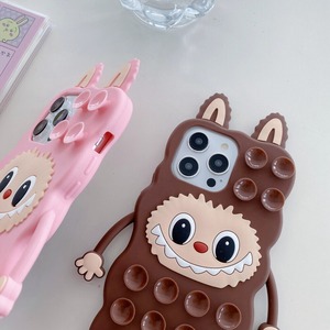 【商品名】便利な吸盤付き!カップルにぴったり♡ 吸盤付き ラブブ iPhoneケース 立体耳 ソフトシリコン 全機種対応 (iPhone 16/15/14 Pro Max) ポップマート