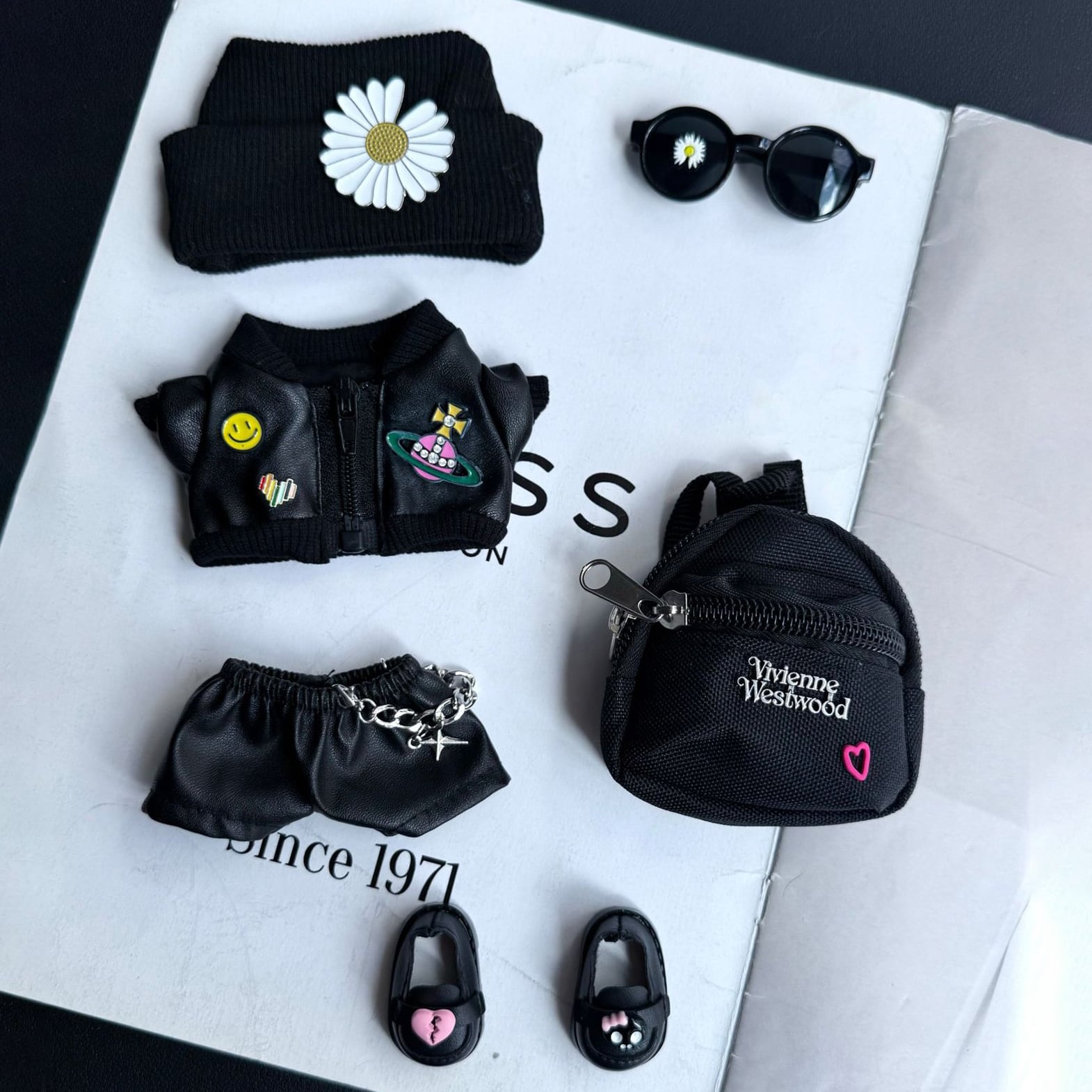 フルセット6点セット!all blackレブー ラブブ♡ かっこいい レザー セットアップ デイジー サングラス 付き 1/2/3世代 共通 おしゃれ かわいい