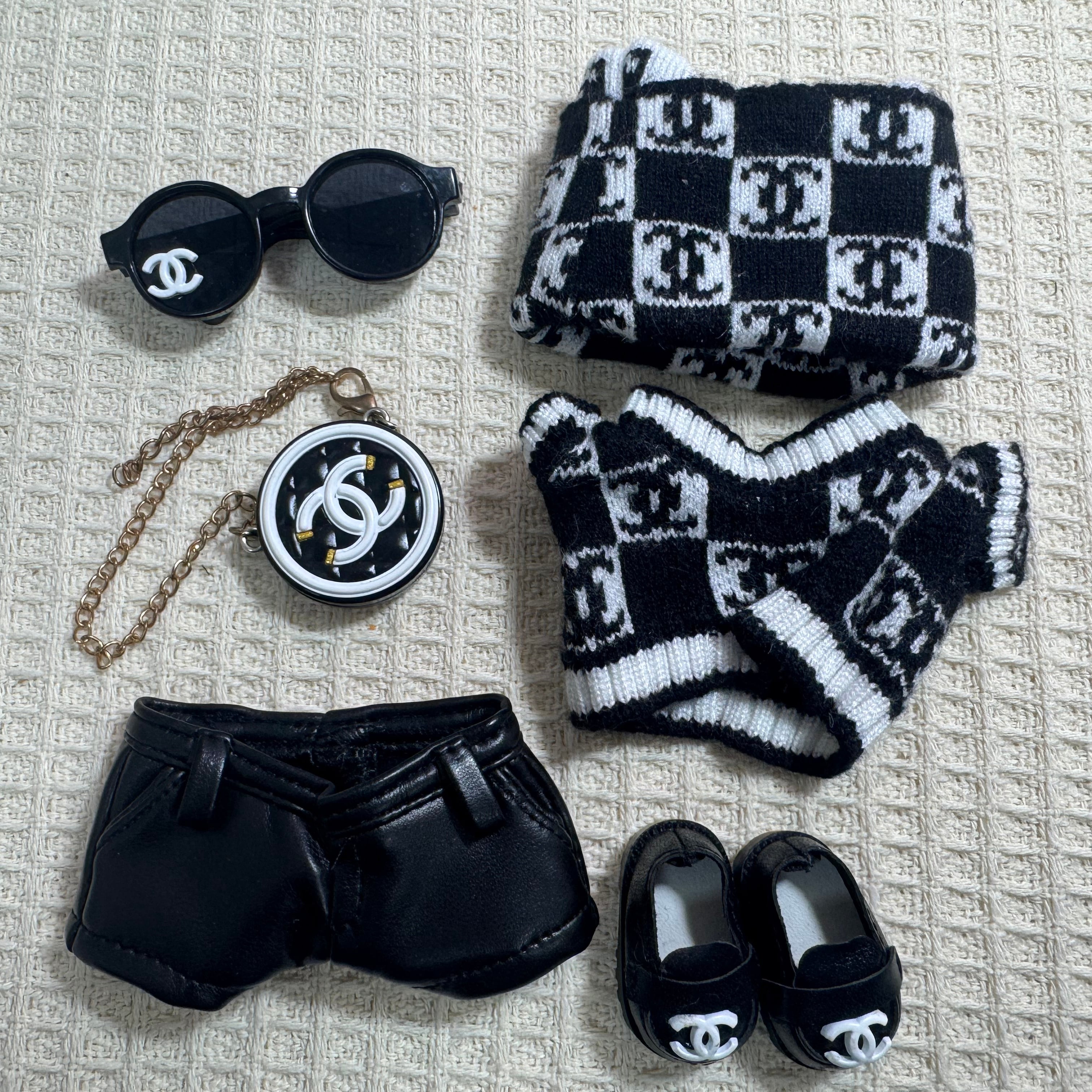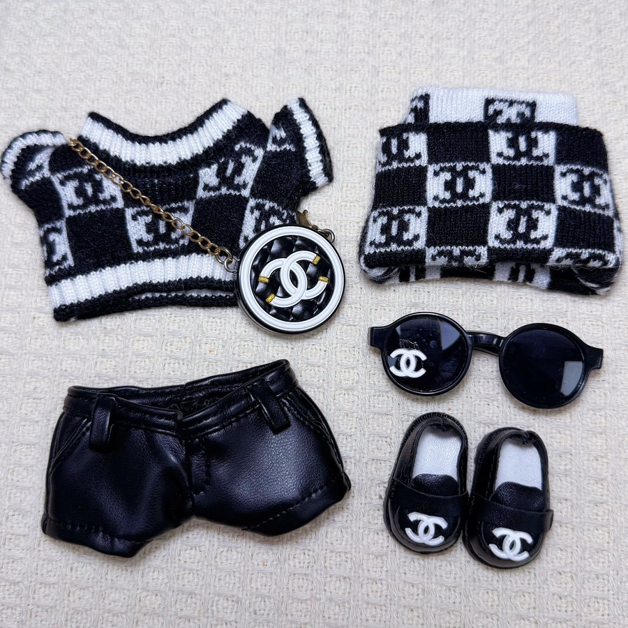 ※予約商品、新たに入荷!※話題の新作・高級感!旬なデザインでおしゃれ度抜群 ♡ レブー labubu チェスボード コーデ ドール服セット クールなフルセット 15cm17cm対応 TheMonsters