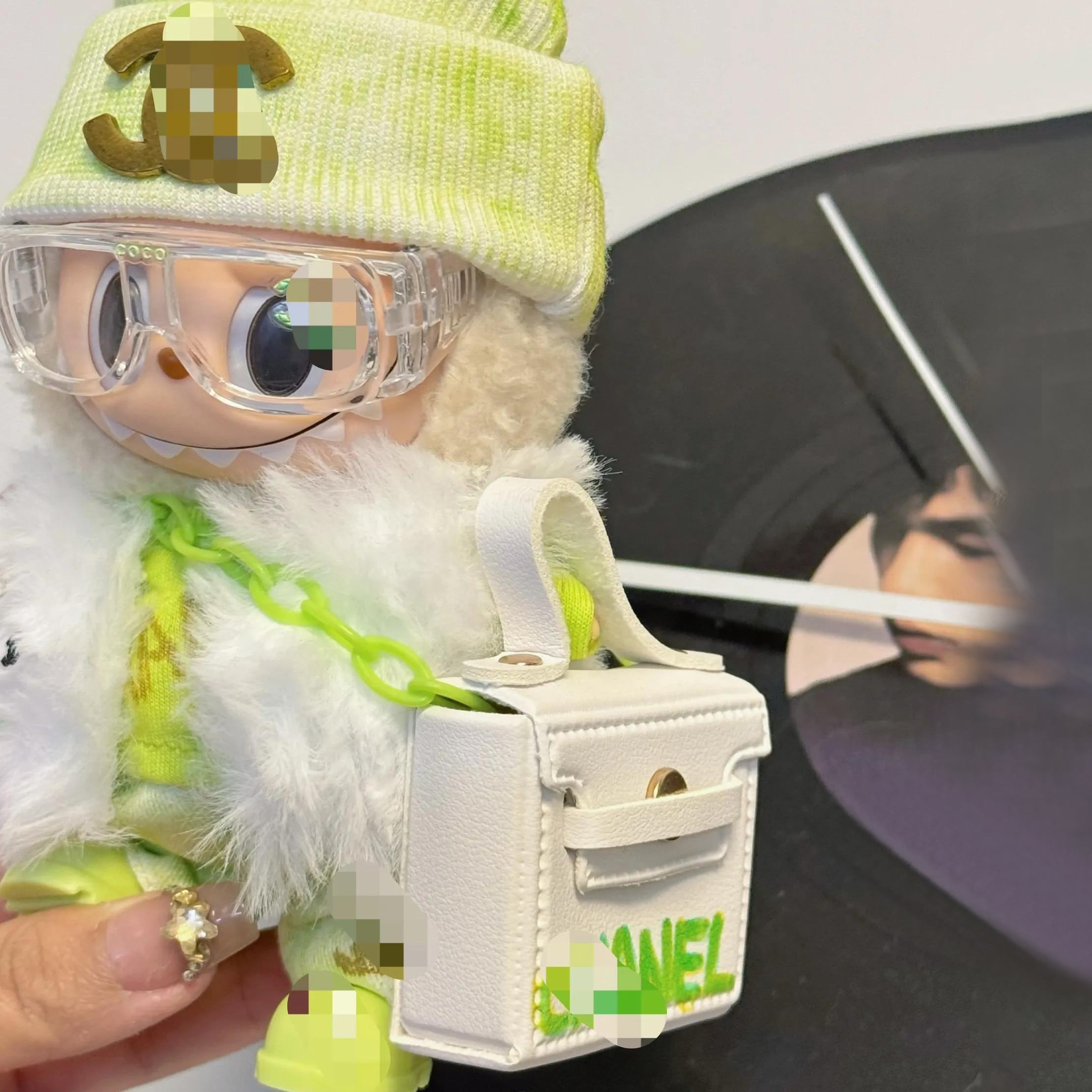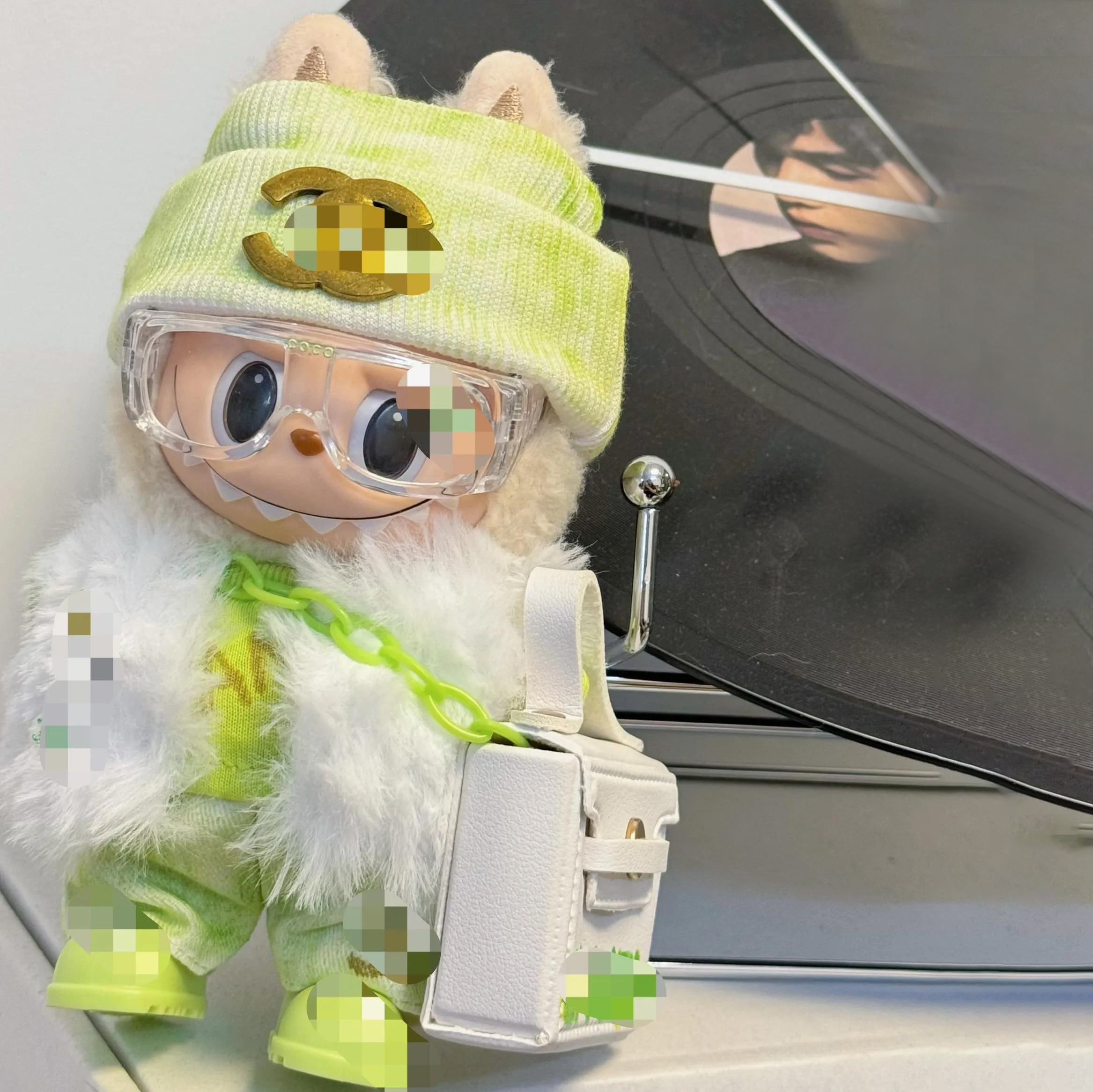 白緑のモードコーデ!甘辛ミックスで注目抜群♡ labubu ラブブ ホワイト&グリーンコーデ ファーベストセット 15cm/17cm兼用 クールで可愛い