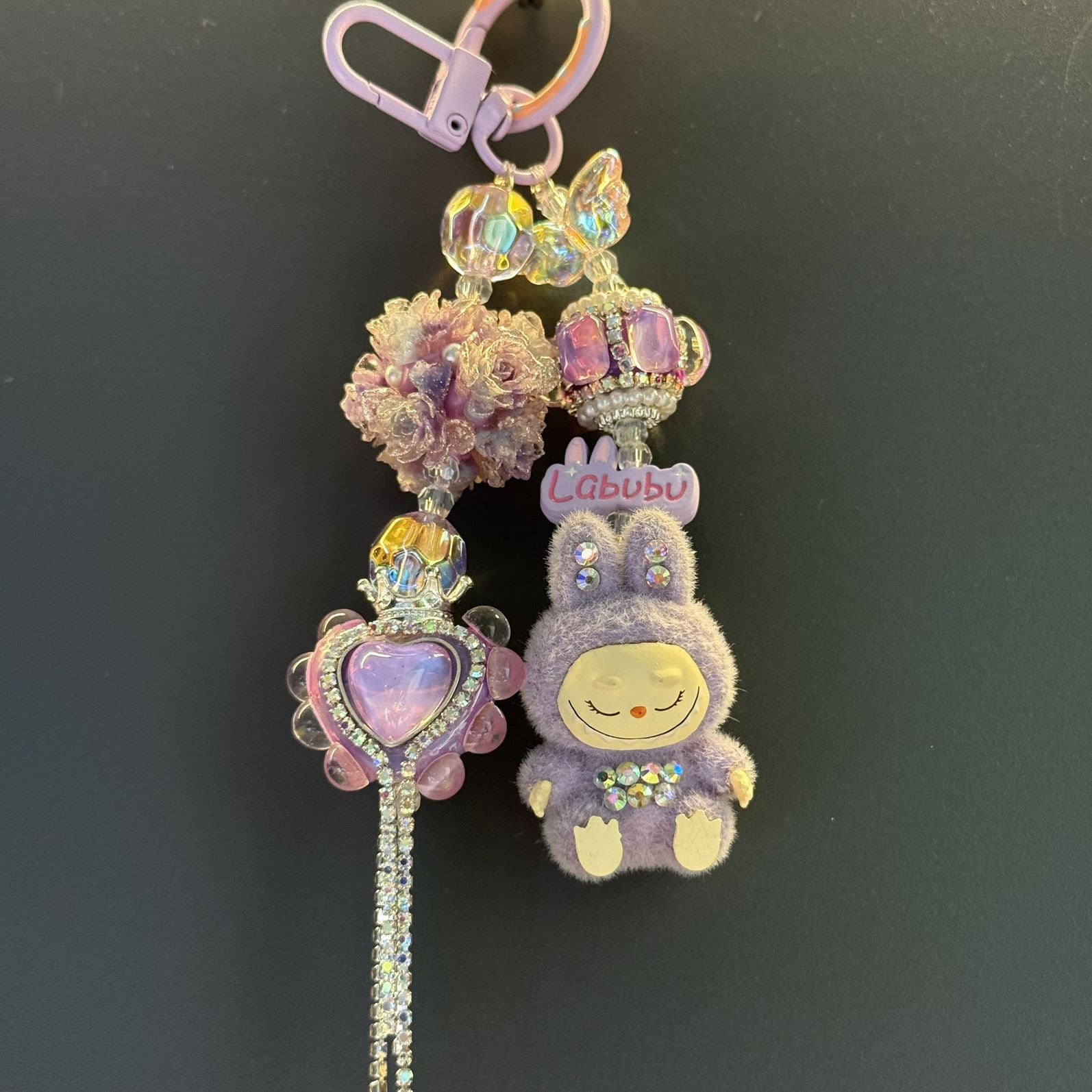 極細ストーンでゴージャスに輝く!プレゼントに最適☆光る花ボールのlabubu!キラキラストーンで可愛く輝く職人作♡ キーホルダー ラブブ おしゃれ キラキラ