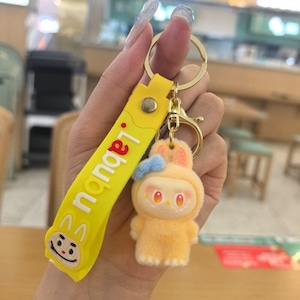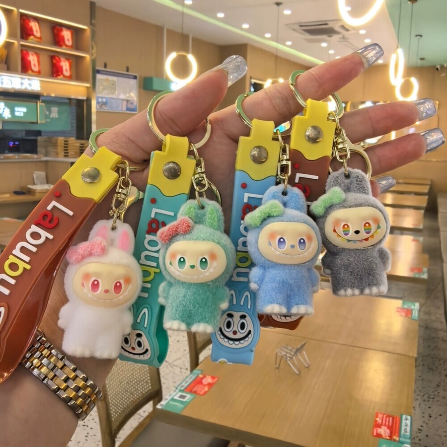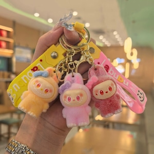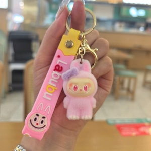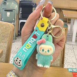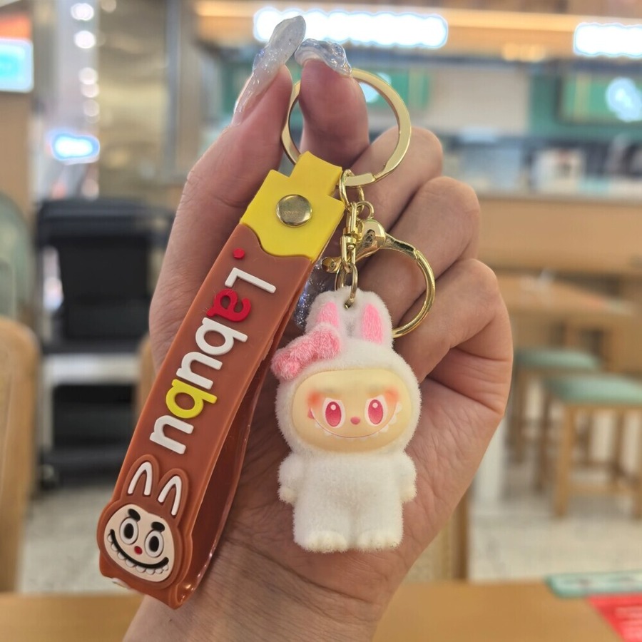 モフモフ肌触り!リボンがときめくラブブのストラップ♡ labubu ラブブ リボン キーホルダー ファーレース モフモフ ストラップ 可愛い ギフト