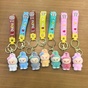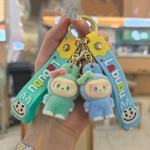 【商品名】モフモフ肌触り!リボンがときめくラブブのストラップ♡ labubu ラブブ リボン キーホルダー ファーレース モフモフ ストラップ 可愛い ギフト