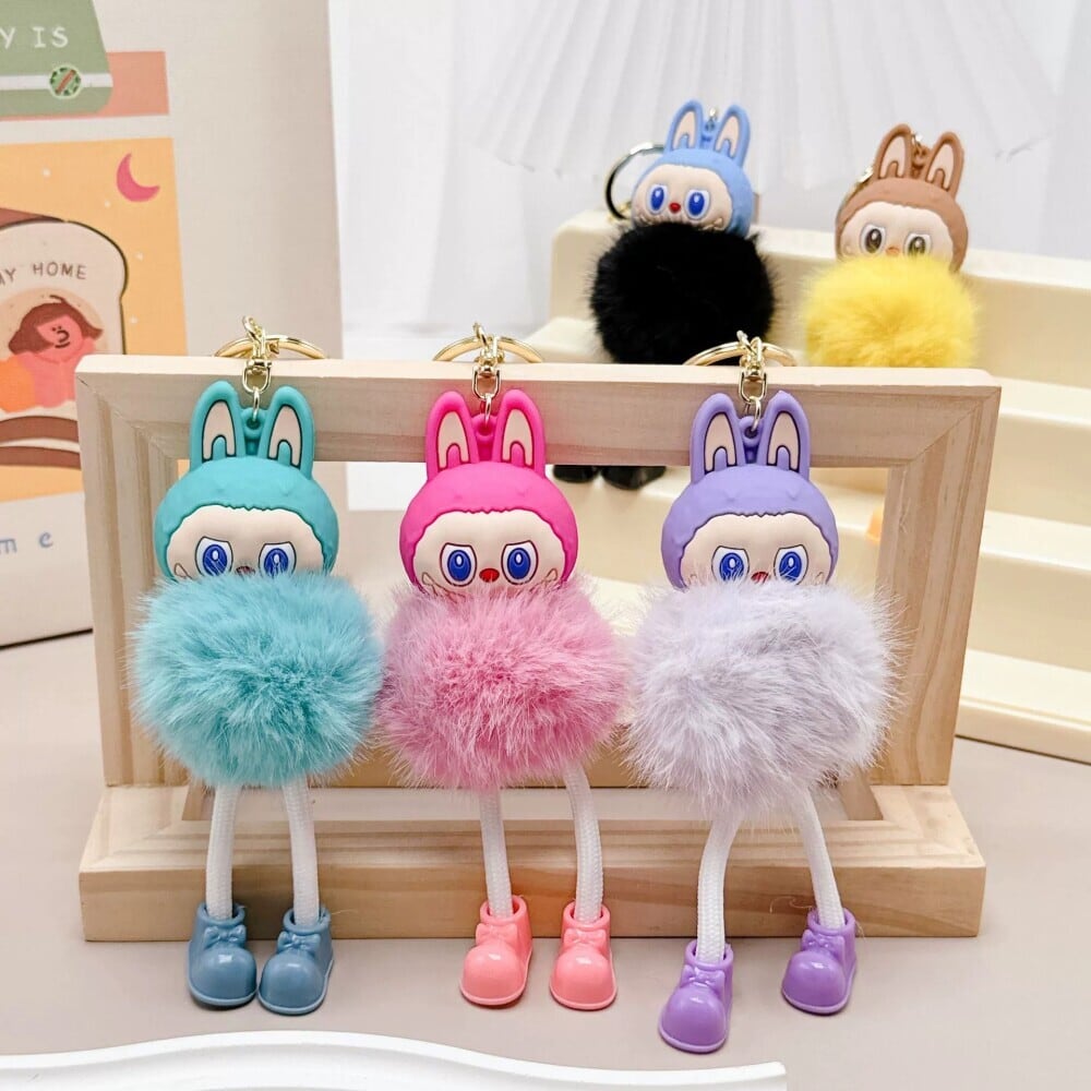 もふもふの毛玉がチャームポイント!labubu ラブブ 毛玉 ポンポン キーホルダー ぶら下がり マスコット もふもふ ギフト